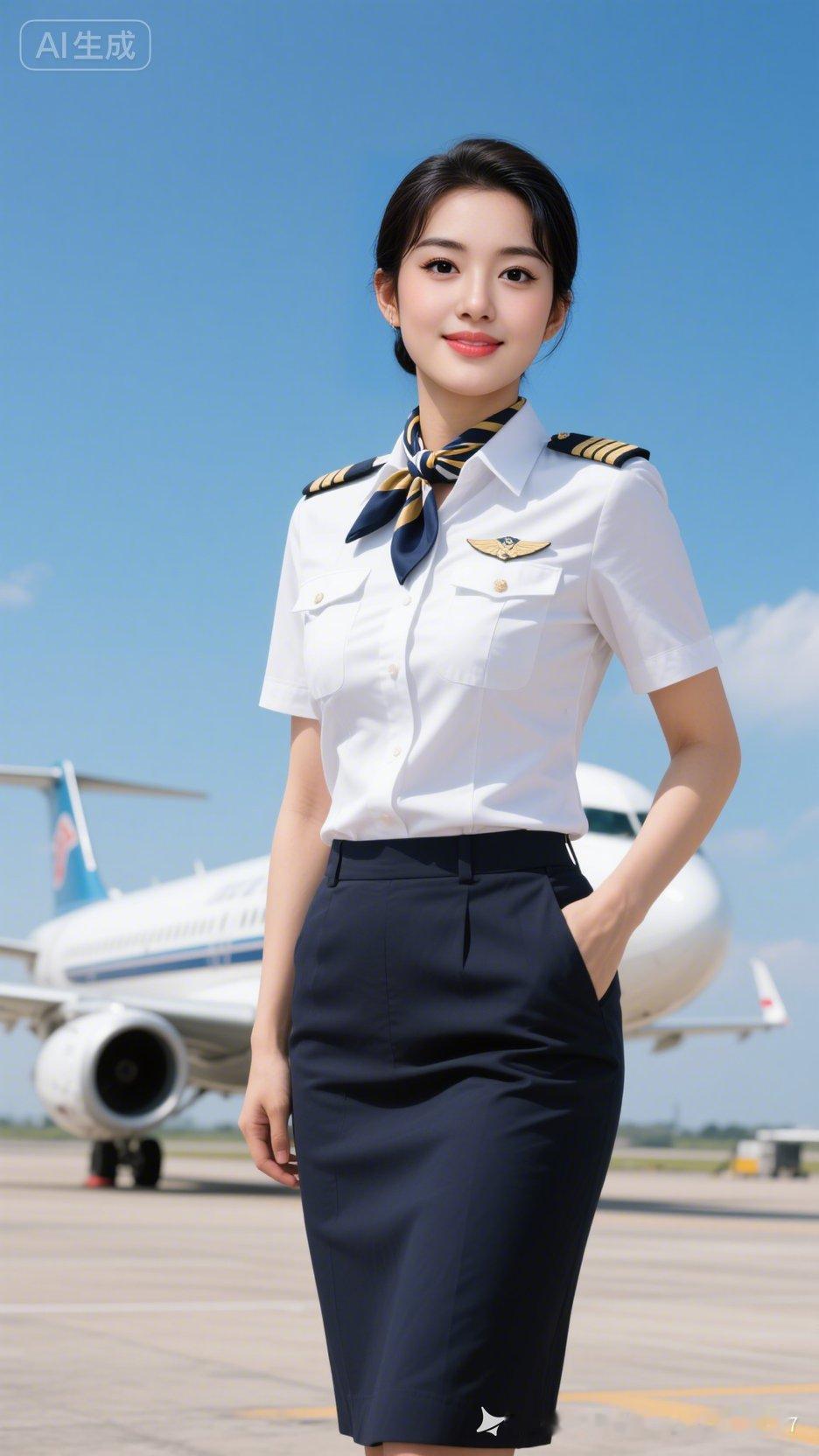 空姐风采,蓝天白云下的优雅姿态!🌈✈️