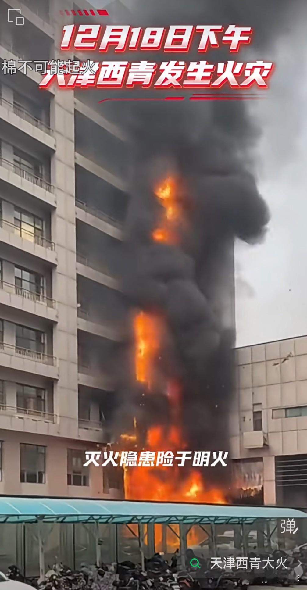 刚刚,天津发生火灾! 天津西青一建筑发生火灾!事故以相关部门通报为准。 其实用电用气,电动车,电线老化,高层楼房,老龄化住楼,还有外沿保温层也是火灾蔓延的关键。外沿保温层应该是阻燃的,但现在都是易燃的。都是火灾发生的隐患!所以注意防火,人人有责! 火灾有点多,也望政府必须重视起来,坚决做到严查严管严防。 再来看看,这火燃起来就有点猛,太可怕了,希望大家平安[祈祷]