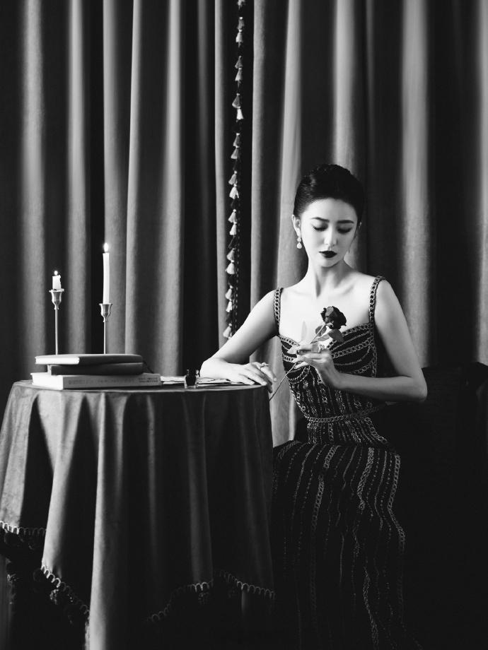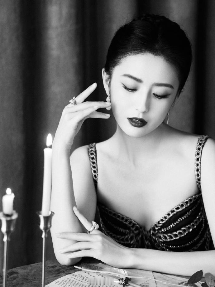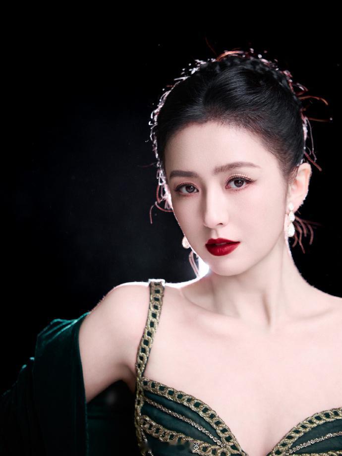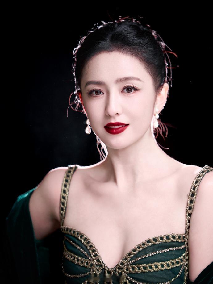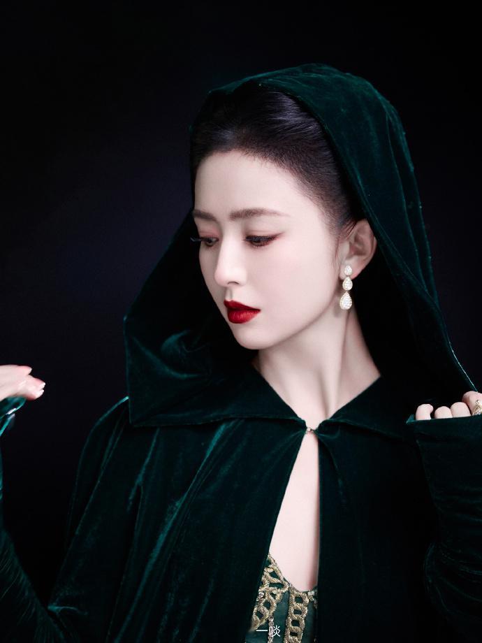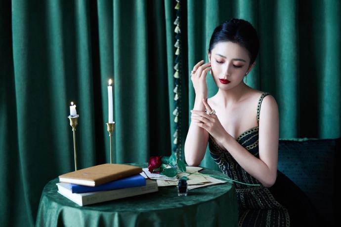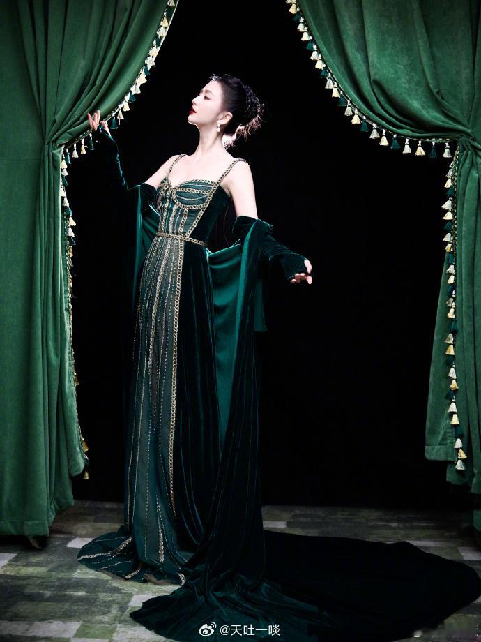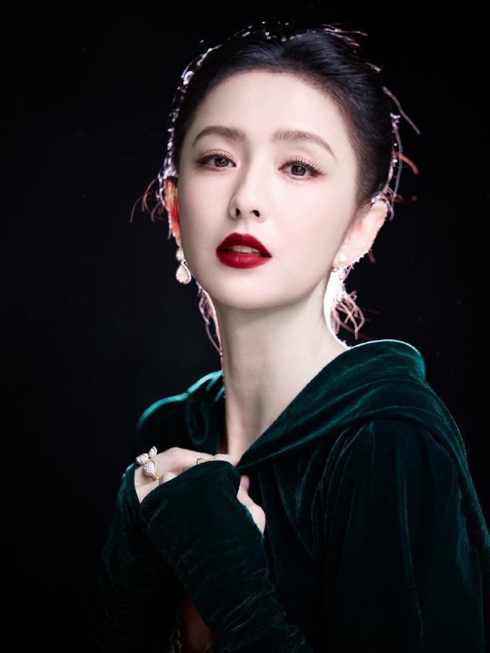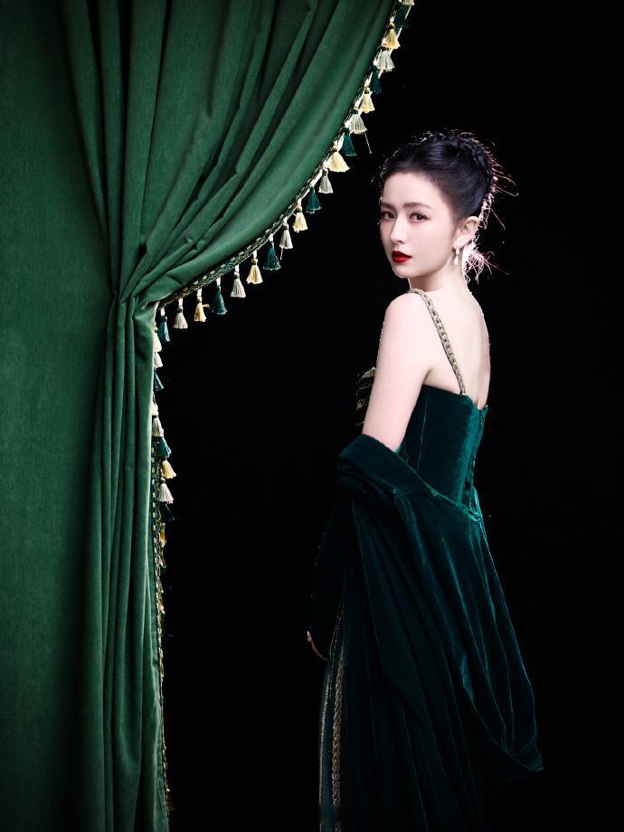 墨绿丝绒肩颈纤美——佟丽娅。每日明星美图分享