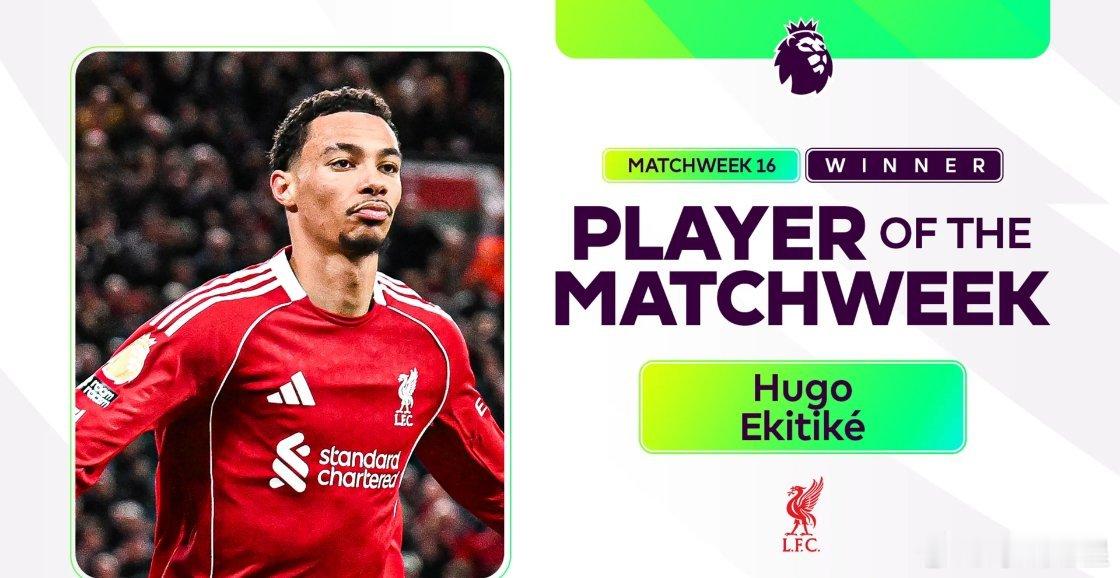 力压萨卡和哈兰德,官方埃基蒂克当选16轮英超最佳球员 英超官方公布了本轮最佳球员候选,连续两场比赛完成双响的埃基蒂克成功当选。他成为自索博斯洛伊和赫拉芬贝赫之后本赛季第三位当选最佳球员的利物浦成员。在本轮比赛中,埃基蒂克在安菲尔德46秒闪击攻破布莱顿的球门;在下半场接萨拉赫的助攻完成梅开二度,成功帮助球队主场2-0零封对手。埃基蒂克以28%的得票率力压萨卡(16%)和哈兰德(15%)当选第16轮英超最佳球员。