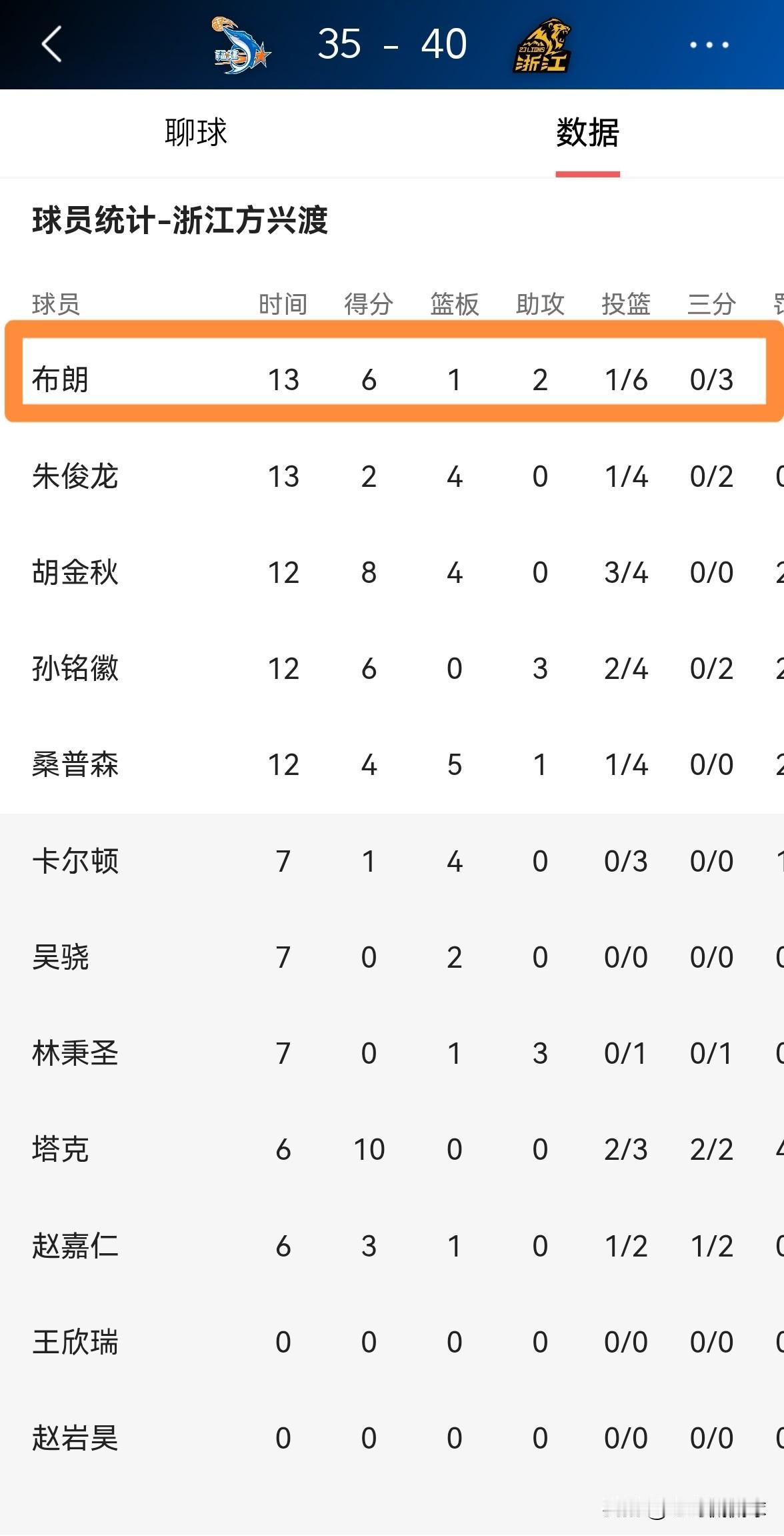 我强烈建议浙江方兴渡立刻将外援布朗交易走!在今天浙江方兴渡客场挑战福建晋江文旅的上半场比赛中,布朗的表现简直就是一场灾难。 在前两节比赛中,布朗首发出战13分钟,投篮6中1,其中三分球3中0、罚球4中4得到6分。 如果浙江方兴渡想要在本赛季实现卫冕,那么球队必须将布朗交易走,如今的布朗已经不是上赛季的布朗了。