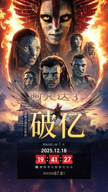 阿凡达3预售票房破亿据猫眼专业版数据,电影《阿凡达3》映前1天, 点映及预售总票房破1亿