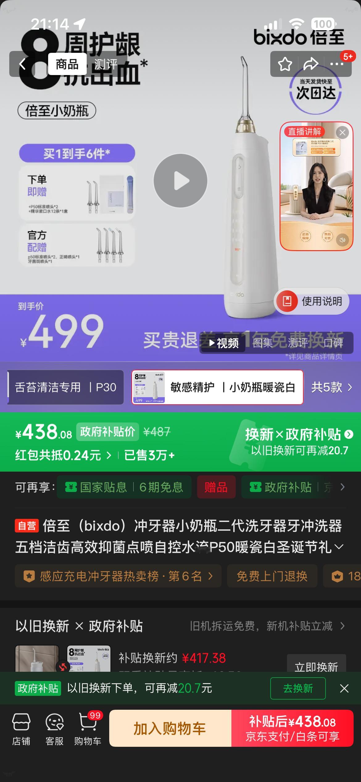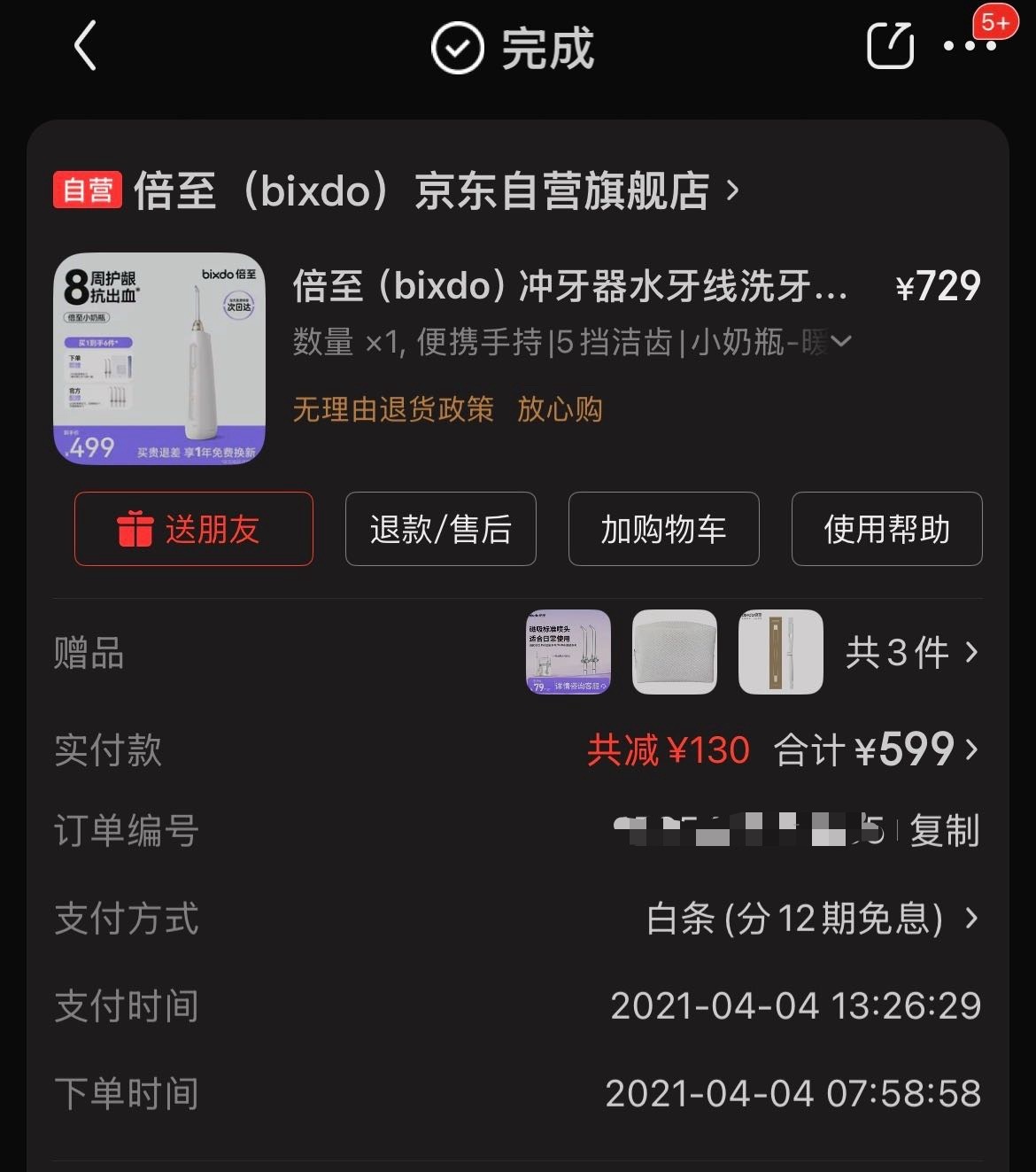 原来冲牙器的寿命也就2-3年,和电动牙刷差不多,当初买的倍至,用了四年多,早就发现它的压力不行了,现在是时候该换新的冲牙器了,当初花了六百块钱,点开链接现在只要438,还是新一代的,突然感觉当初花了那么多钱的我真是一个冤大头。