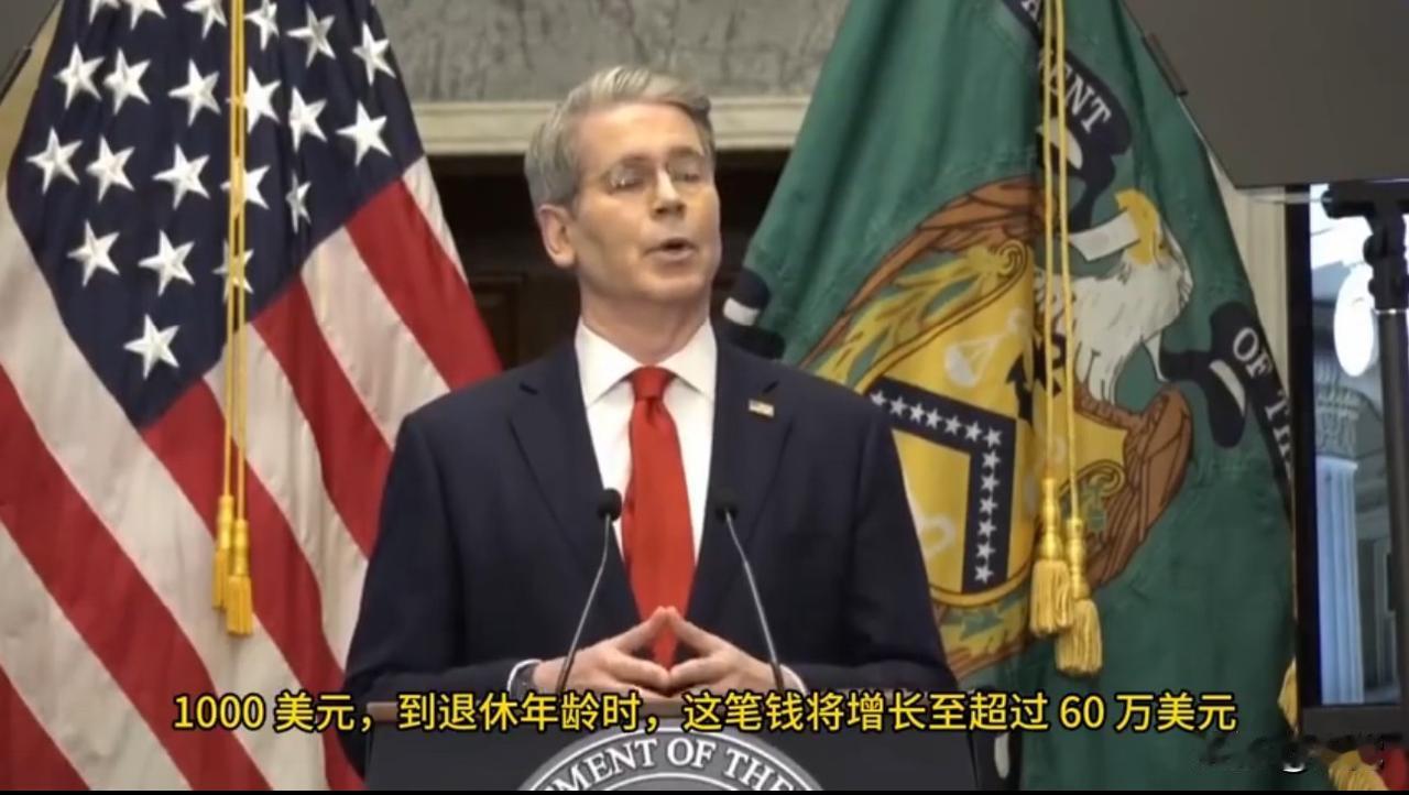 分享一件有趣的事情 美国财政部长贝森特 宣称美国公民出生时 如果将 1000 美元存入特朗普账户 假设增长率持续增长下去 到退休年龄将增长至 60 万美元以上 无论出身如何 特朗普总统让每个公民都有望实现美国梦 不知道这样的假设是否成立 我们能不能效仿一下呢?