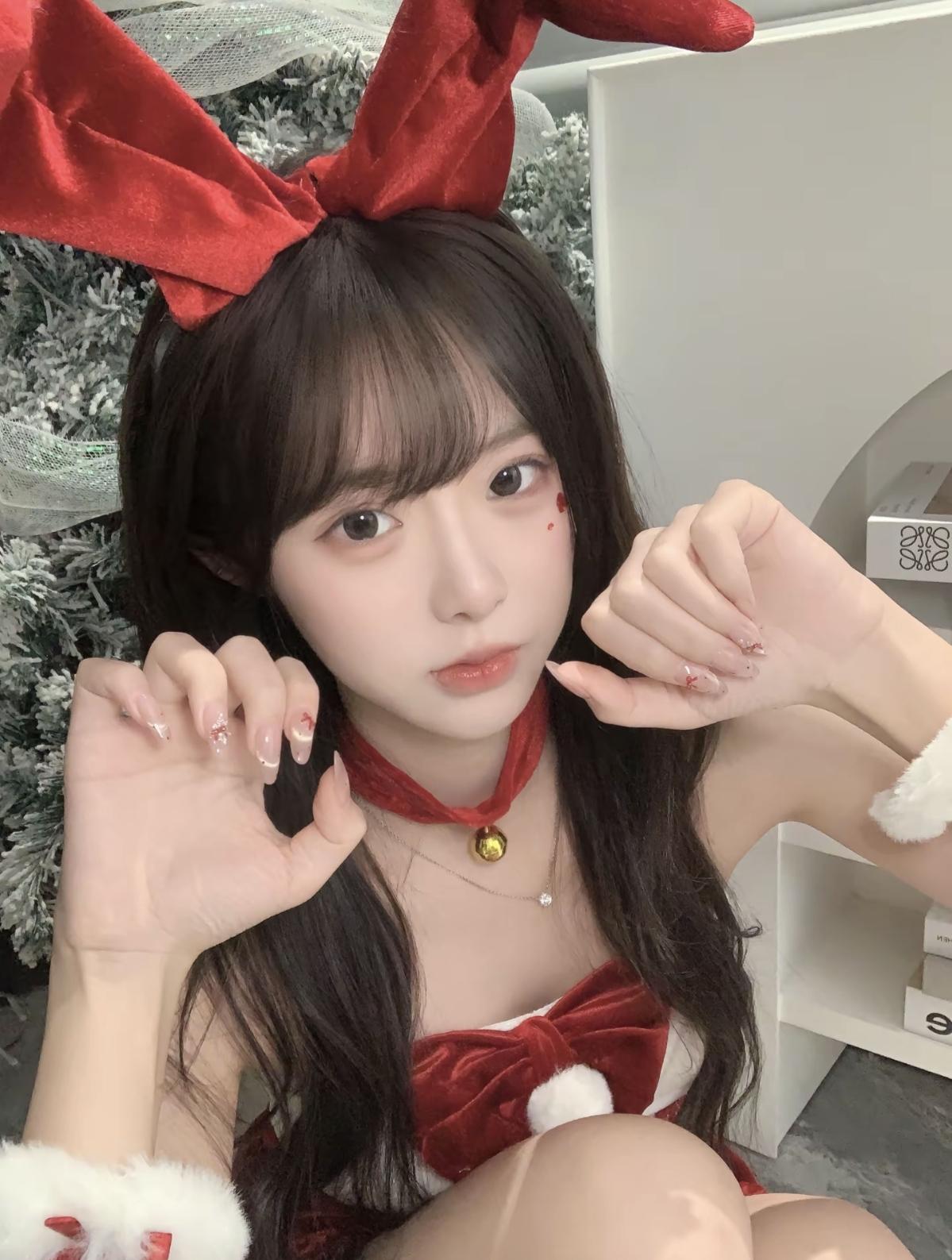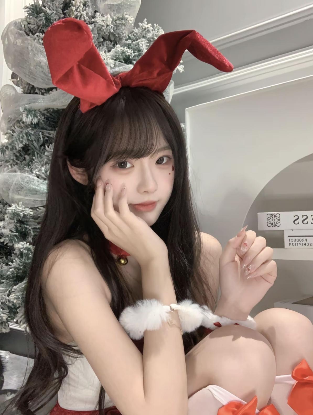 圣诞氛围满满,兔耳朵发饰可爱又俏皮,快来一起过圣诞吧-今晚不吃鱼!🎄🐰女孩
