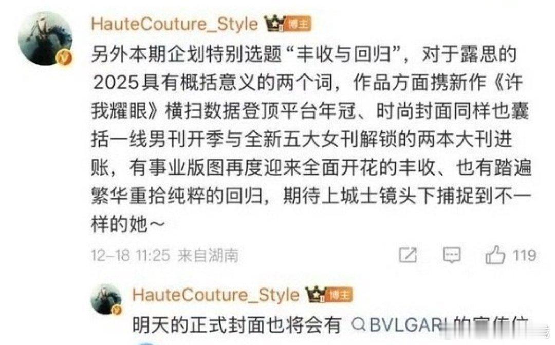 赵露思的上城士闭年刊封面有宝格丽的宣传位应该是和宝格丽续约成功啦恭喜露思