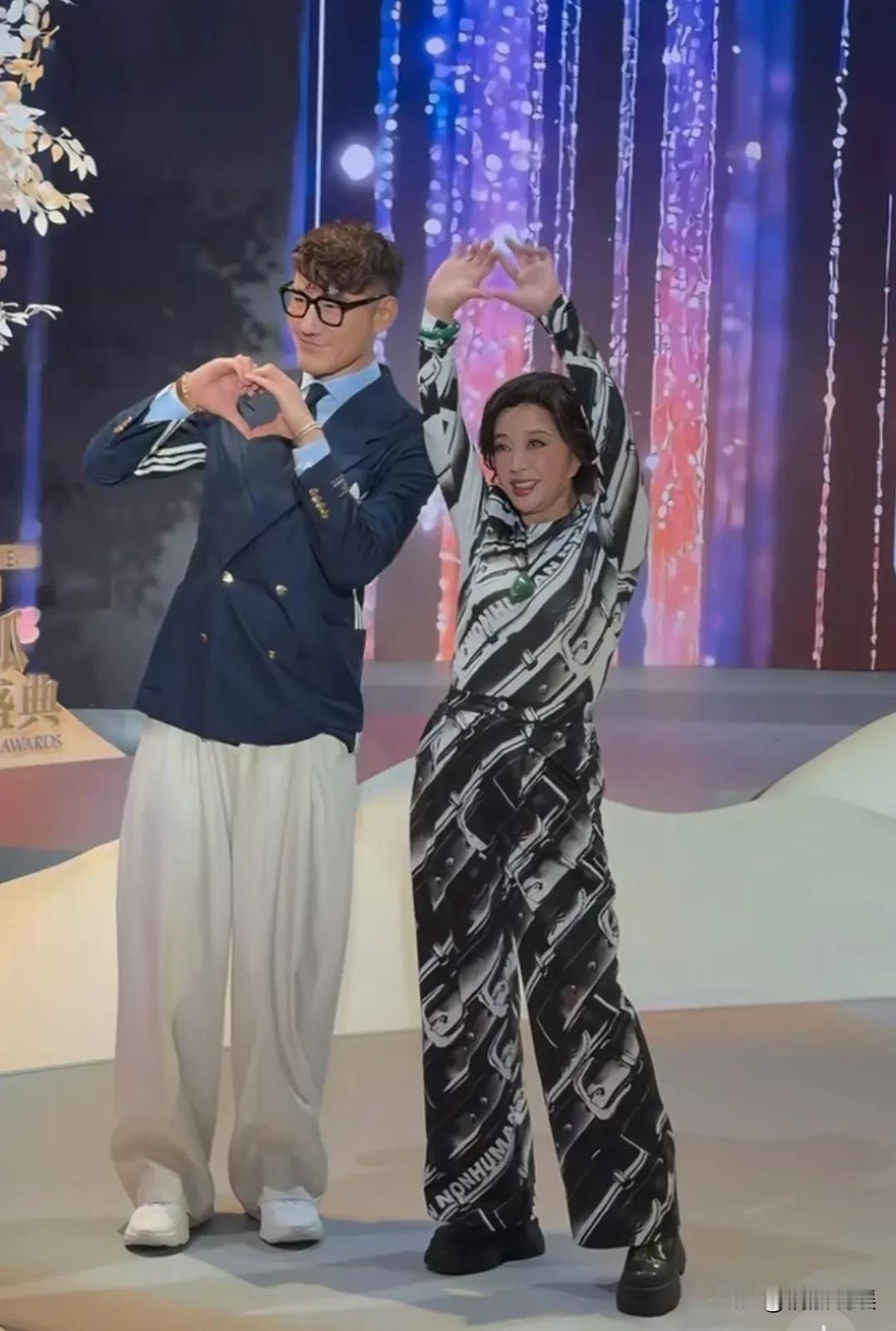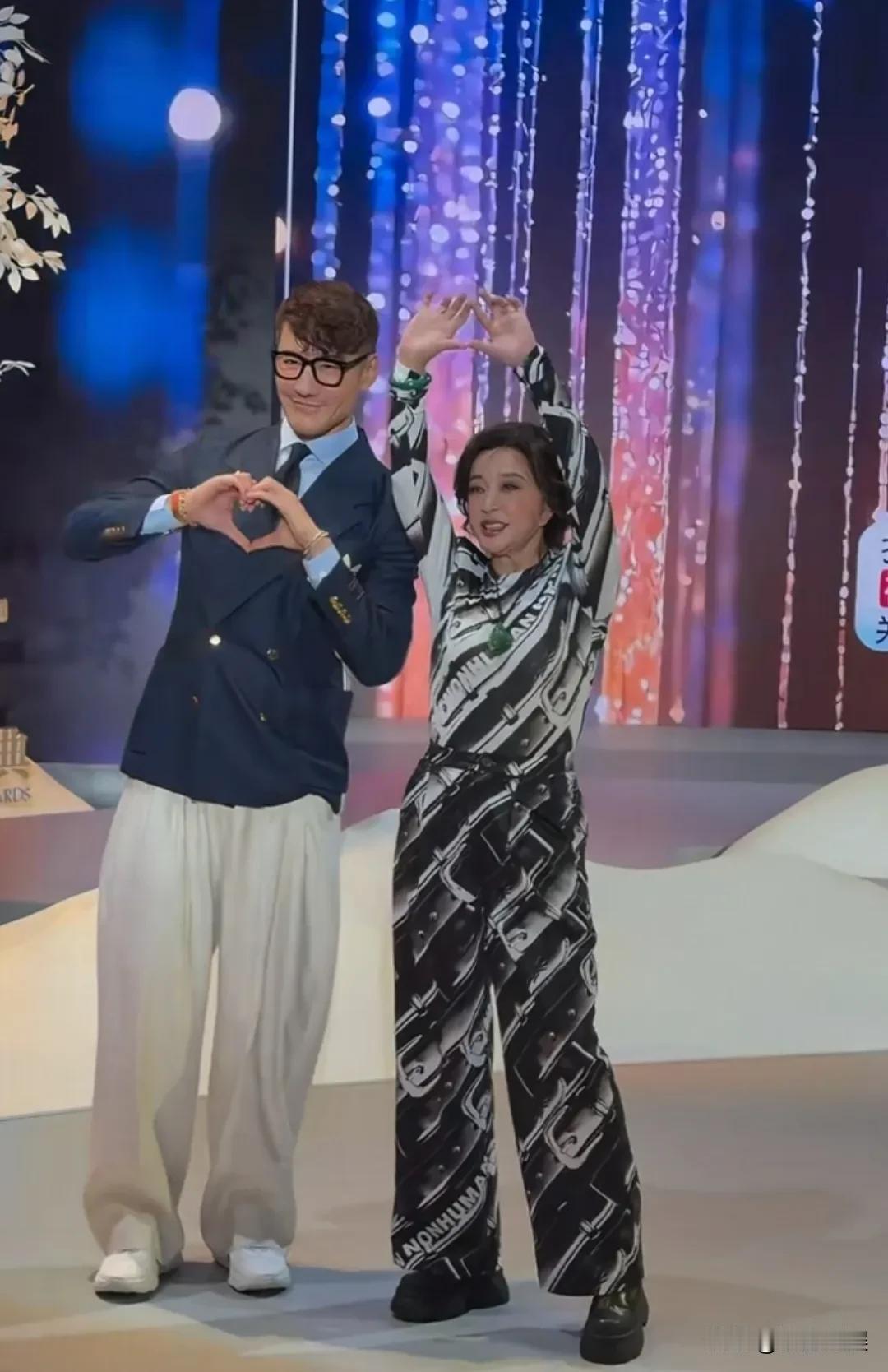 原来,胡兵才是庆姐最好的医美。[呲牙] 75岁的刘晓庆,和54岁的胡兵现身搜狐时尚盛典活动,相差21岁的俩人携手走红毯,毫无违和感。 庆姐穿着一套黑白斜纹套装,发型也很适合她。瘦身不少的她,腰肢盈盈,曲线玲珑,步伐轻盈,感觉血气好充足。 这次不论是穿搭还是妆容,都太适合她了,造型师可以加鸡腿了。 胡兵小西装配白色阔腿裤,戴着眼镜,斯文儒雅。他的性子真的好nice,感觉非常迁就、配合庆姐的出场节奏,各种比心。 看过庆姐和很多男明星走红毯,感觉她和胡兵是最搭的。