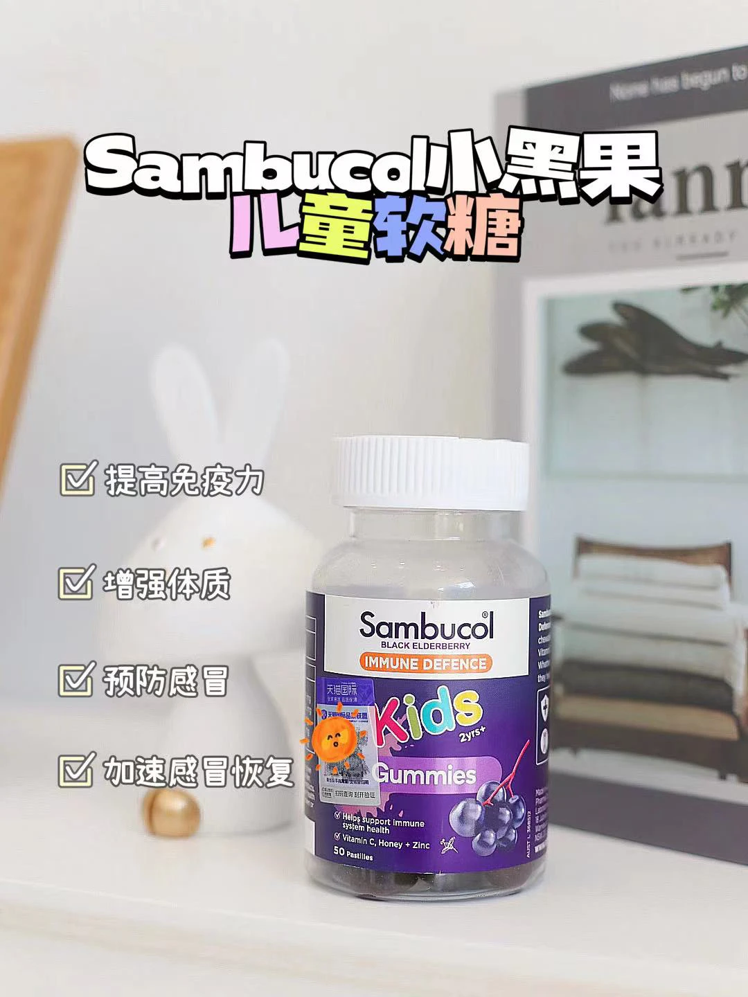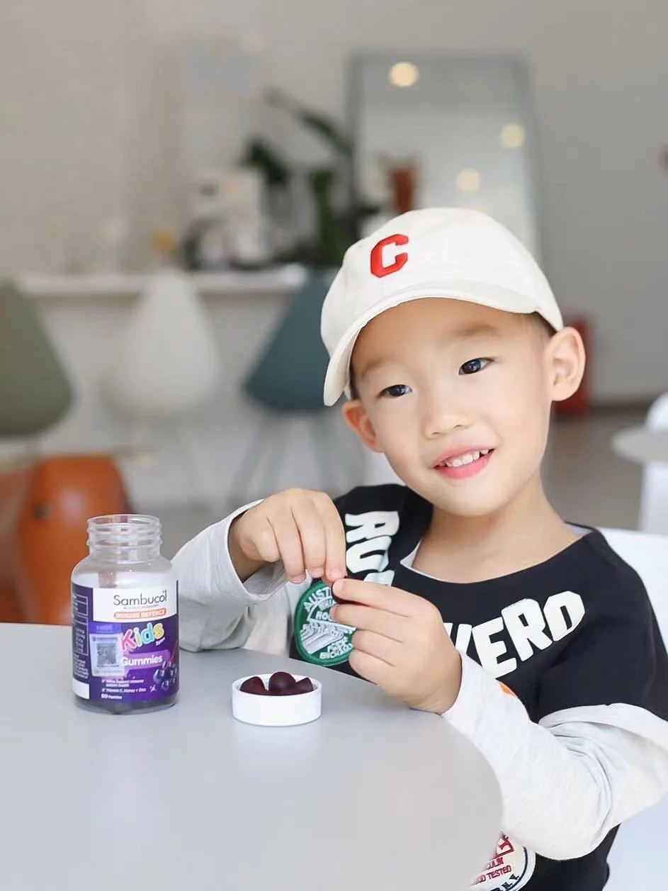 就是这个Sambucol小黑果儿童软糖,可以一次性把免疫力的4个黄金成分都补充到,也就是黑接骨木莓、维C、锌、蜂蜜💕我也是通过这个产品才知道原来黑接骨木莓这么好,它是专门用于提高身体的免疫机能,抵御病毒流感的,真的希望有更多妈妈能够了解它🥰而且我家哥哥吃下来效果真的很不错!