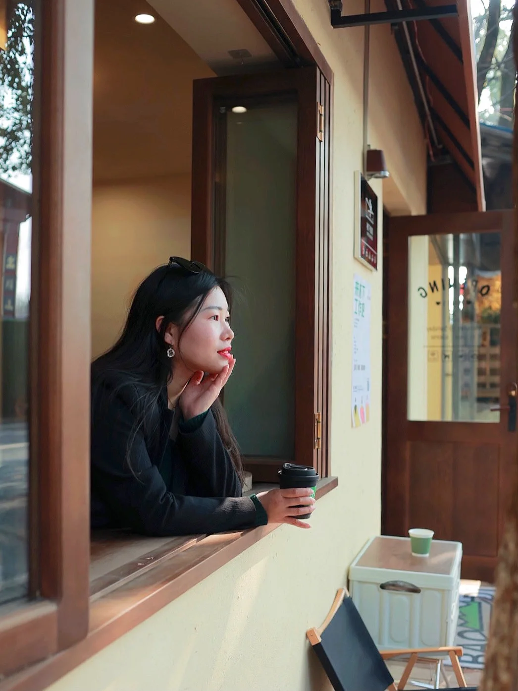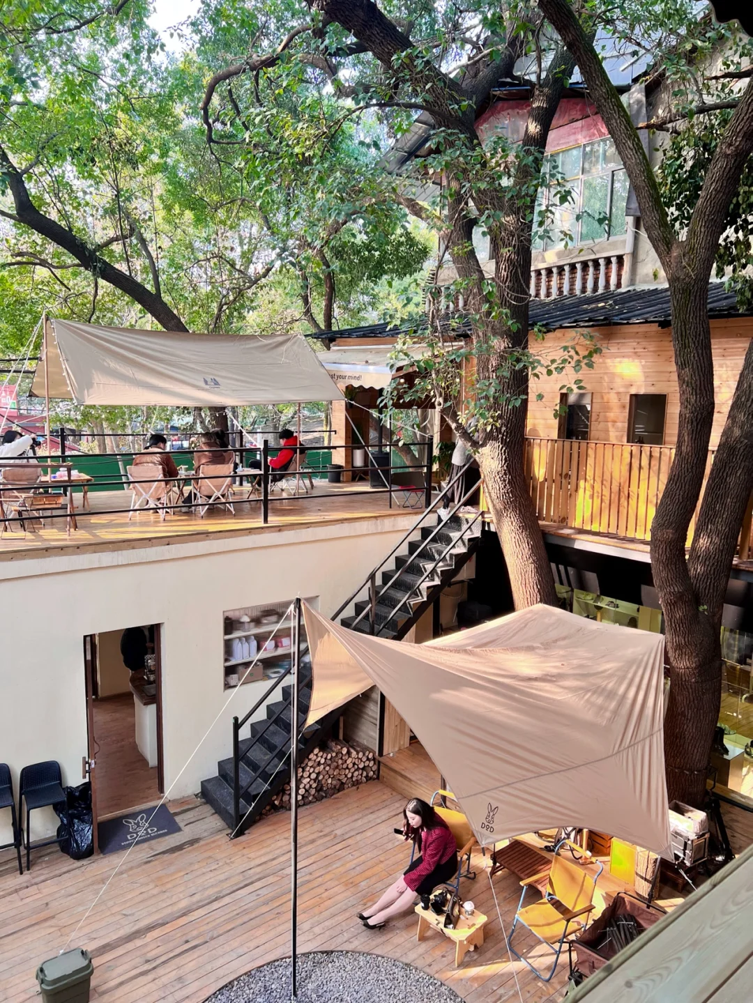 不仅一楼院子可以烤火喝咖啡☕️,二楼也有室内跟露天露台两部分,当然门头的设计也很🉑️,随便坐着或者走动起来拍照都很有感觉