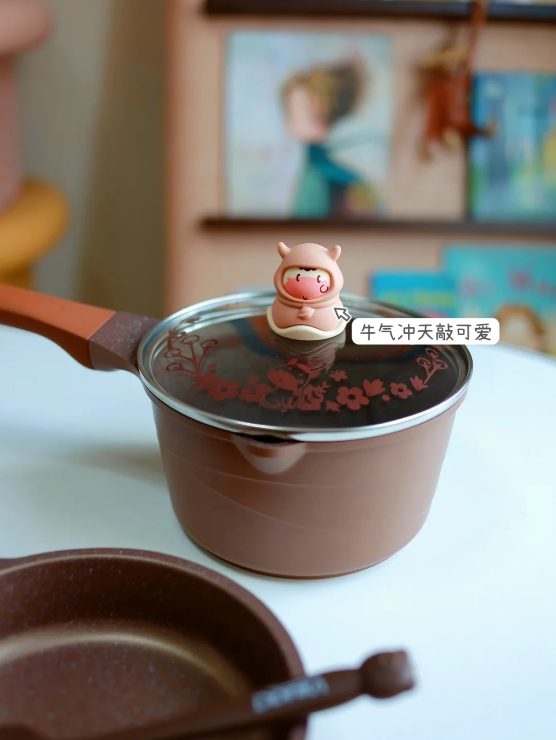 它家的辅食锅一直长在我的审美上,之前买了兔子图案的,最近出了新的样式,果断又入了一个牛气冲天的,都很喜欢💕它家的锅是母婴级别的陶瓷不粘锅,有一个小煎锅跟一个小煮锅,平时给娃煮面条、鲜奶,煎鸡蛋都很好用