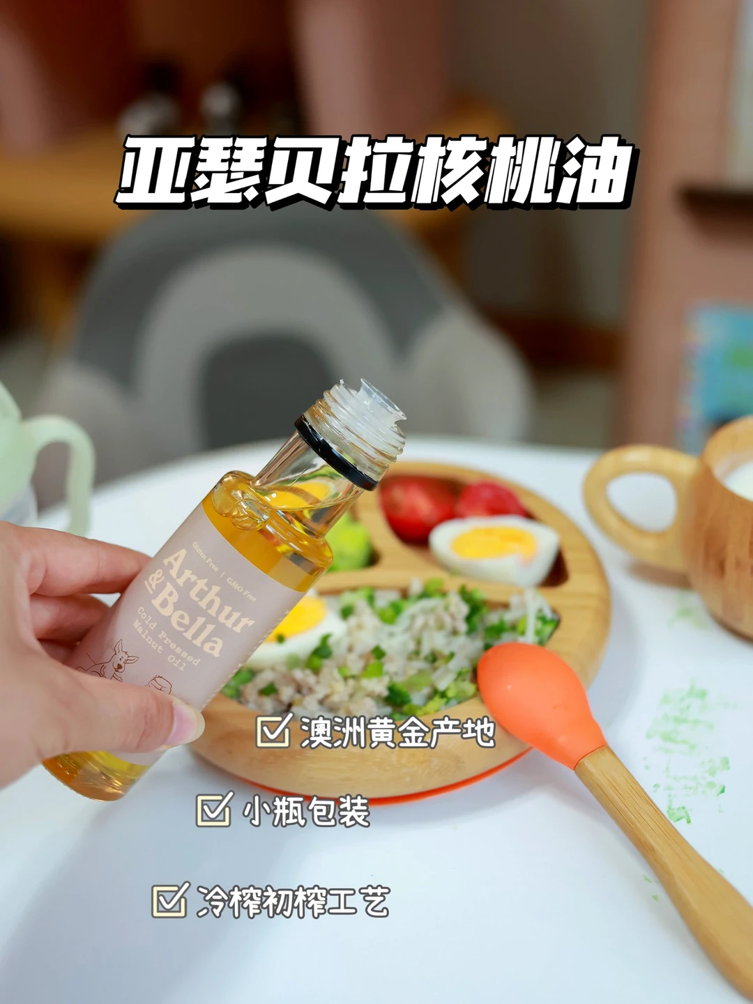 大家一定要注意下,宝宝吃的油最好买小瓶装的,因为这种不容易变质,可以保证油质一直是新鲜的。跟奶粉一样,油也是看产地的,这款油是澳洲黄金产区的,没有污染,营养也会更丰富。现在每天都会在宝贝的辅食中加一些,不腻,有很特别的坚果味,宝贝每次能吃很多!