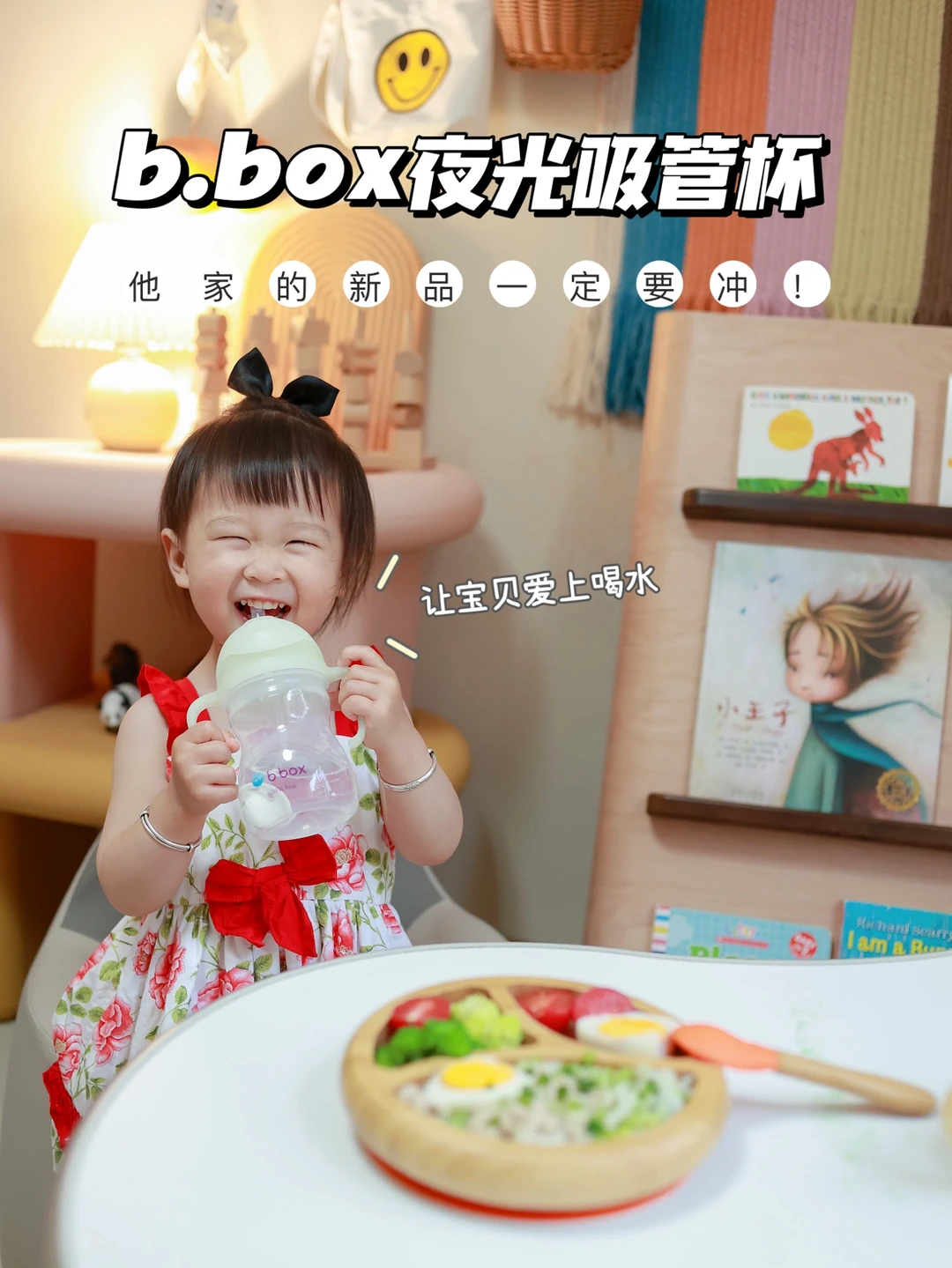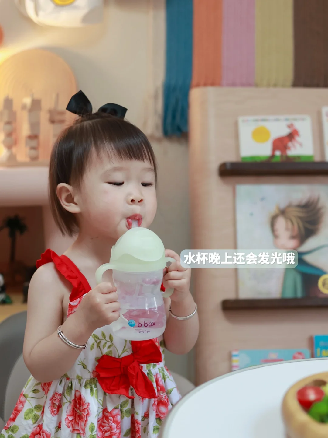 这个水杯很有趣,我觉得它是可以让宝宝爱上喝水的一个杯子!因为它的特殊材质,白天可以吸收太阳光,晚上就会发光~所以我们家星星特别喜欢用它喝水💦功能和b.box其他水杯一样,有重力球、不呛,躺着坐着喝水都是没问题的哦!