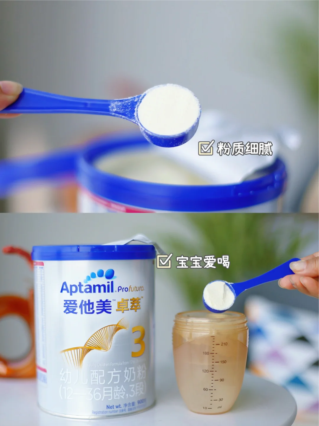 当然主要的也要宝宝爱喝才行呀🥰粉质是非常细腻的,冲泡后也不易挂壁不易结块,口感不会很甜,宝宝特别喜欢,每次小家伙都能喝上210毫升的奶呢,咕咚咕咚几口就喝完💕