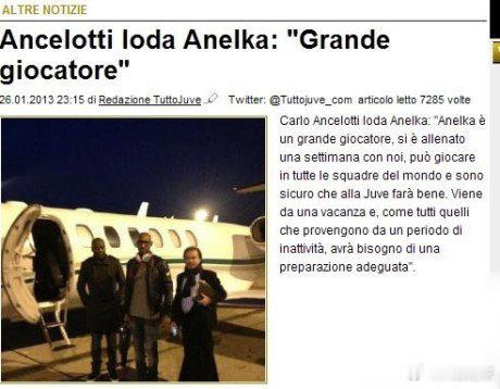 【阿内尔卡深夜抵都灵签约 或24小时内加盟尤文】1月27日讯,据报道阿内尔卡已经飞抵意大利,加盟意甲豪门尤文图斯足球俱乐部 队。尤文图斯总经理马罗塔,也证实这次转会已经完成,阿内尔卡也为能够加盟尤文而倍感兴奋。尤文图斯