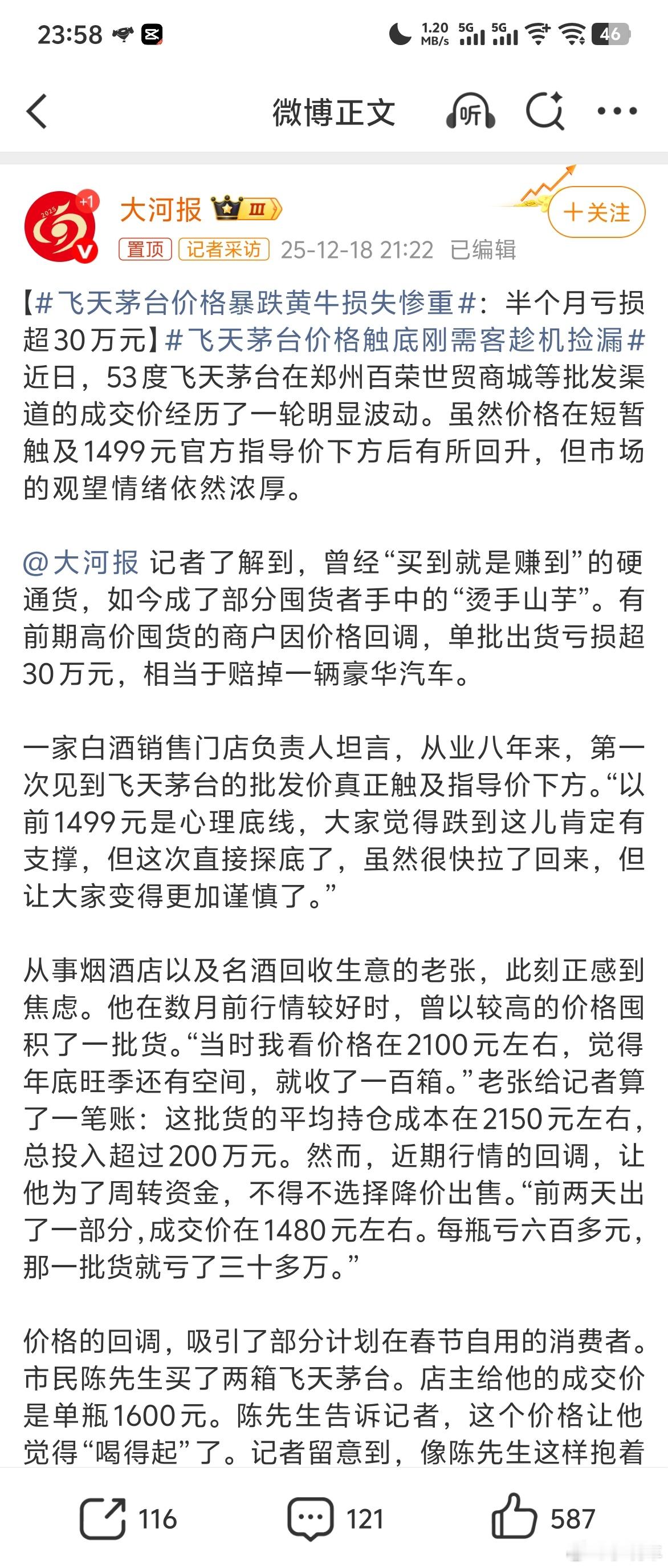 飞天茅台价格暴跌黄牛损失惨重以前零售价两三千的时候,赚几十上百万怎么不说?