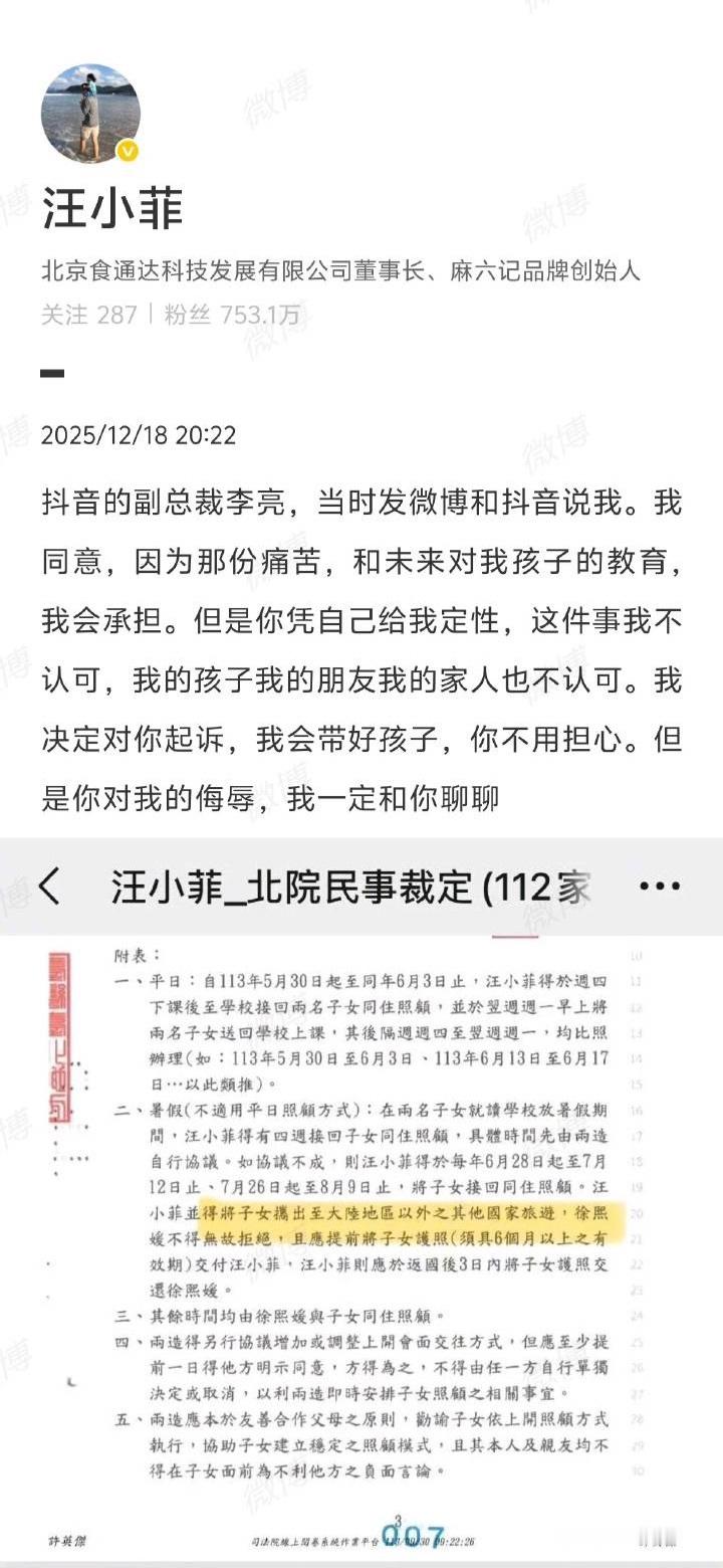 汪小菲喊话抖音副总裁李亮后秒删「你对我的侮辱,我一定和你聊聊。」