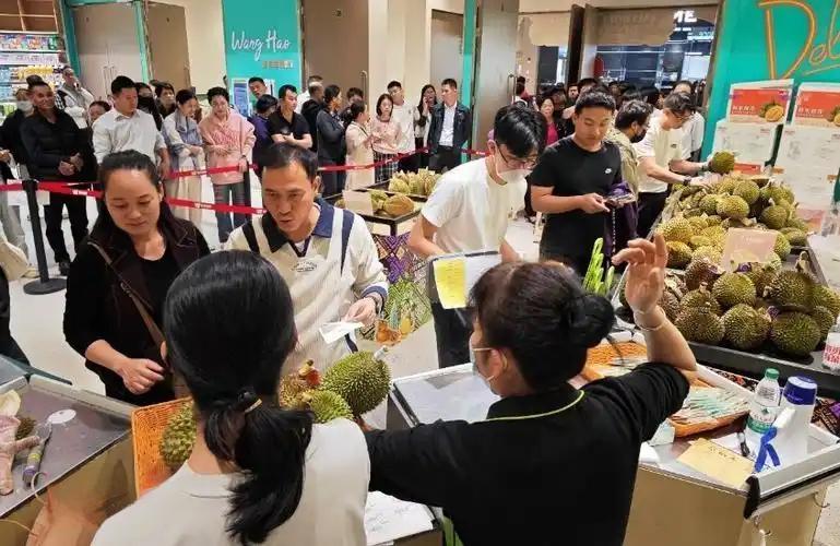 2025年12月18日海南自贸港封关首日,首批马来西亚鲜果榴莲空降海口旺豪超市。1.5吨猫山王、黑刺等7个品种引发抢购热潮,市民排起数百米长队,仅1小时便售罄。价格较平日减半,消费者直呼“在家门口实现榴莲自由”。2025年12月18日海南自贸港封关首日,首批马来西亚鲜果榴莲空降海口旺豪超市。1.5吨猫山王、黑刺等7个品种引发抢购热潮,市民排起数百米长队,仅1小时便售罄。价格较平日减半,消费者直呼“在家门口实现榴莲自由”。原产地榴莲 榴莲海关
