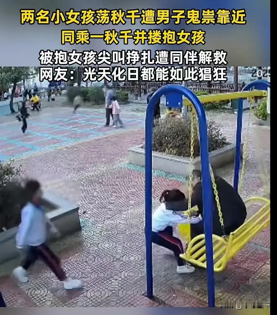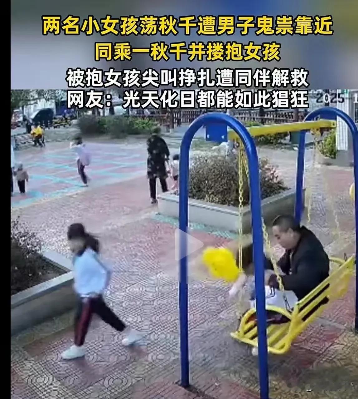 ⚠️大家都要警惕身边!!! “光天化日,骚扰小女孩,怎么敢的?”广东,两名小女孩在公园荡秋千,一名男子鬼鬼祟祟地靠近,突然抓住一名小女孩搂抱……网友:看岁数也不小了,这种就是变态,一定要抓起来严惩啊! 监控画面里的一幕,看得人脊背发凉!小女孩们正笑着荡着秋千,全然没察觉到危险逼近。那名男子先是在不远处徘徊,眼神黏在孩子身上,见四周暂时没人上前阻拦,竟直接冲过去一把搂住其中一个孩子,动作猥琐又嚣张。 幸好附近有路人及时发现,厉声呵斥吓退了男子,孩子才没受到更严重的伤害。可光是这一幕,就足以让所有家长怒火中烧!公园本该是孩子撒欢的安全地,怎么就成了坏人伺机下手的“狩猎场”? 网友们怒了:“一把年纪了,怎么能对小孩子下得去手?”“必须严惩!这种人根本不配待在阳光下!”还有不少家长感同身受地后怕:“每次带孩子出门都提心吊胆,生怕一转头就出意外。” 这起事件,更该给所有家长敲响警钟:公共场所,别让孩子离开自己的视线半步;教会孩子遇到陌生人搭讪、触碰,第一时间大喊求救。同时也要呼吁,遇到此类恶行,每个人都别做沉默的旁观者,及时出手,就是给孩子多一层保护。 坏人不会因为孩子年纪小就心生怜悯,我们能做的,就是用警惕和勇气,为孩子筑起一道安全防线。 你遇到过类似的危险场景吗?评论区说说你会怎么教孩子应对陌生人骚扰!