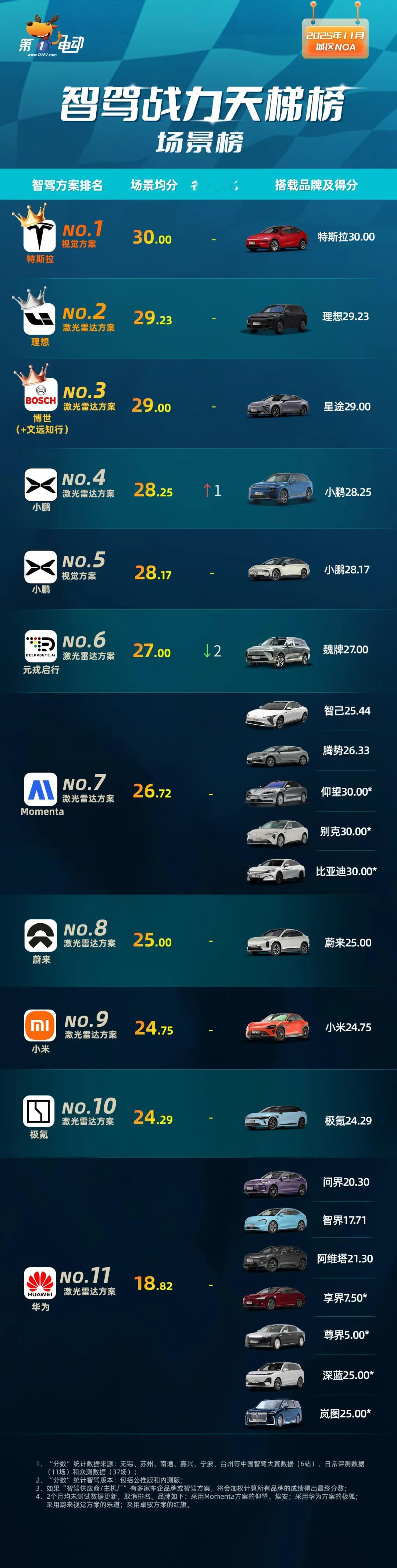 第一电动智驾战力天梯榜!特斯拉第一!小米第九!华为十一!这真的不是扯犊子呢吗?