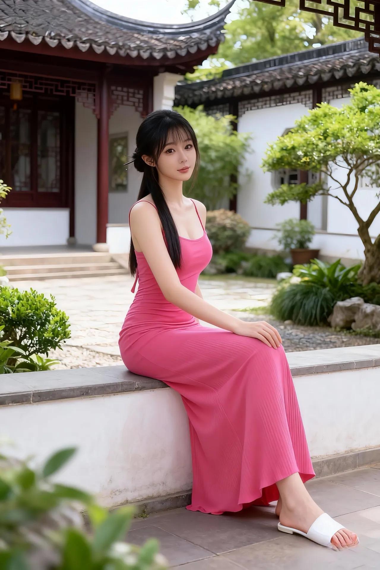大家说说这是“大家闺秀”还是“小家碧玉”,我关心的是她的另一只拖鞋去哪儿啦? 国风大家闺秀 国风女士拖鞋
