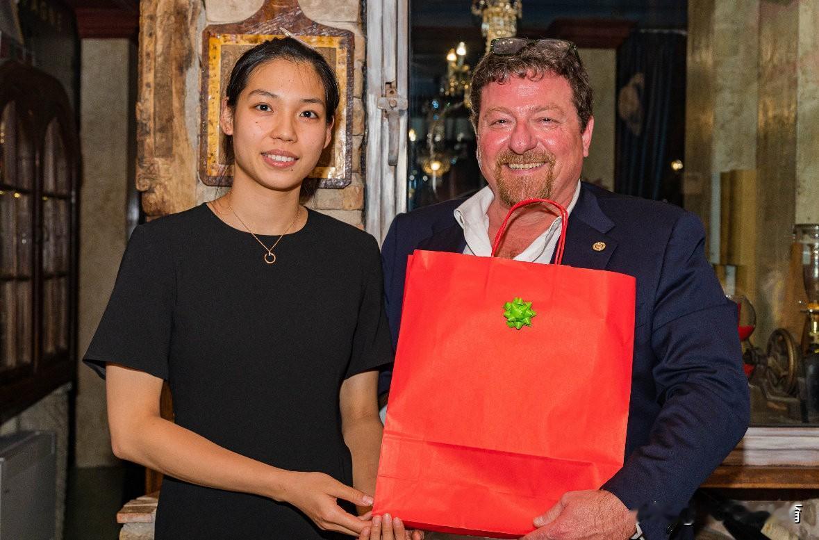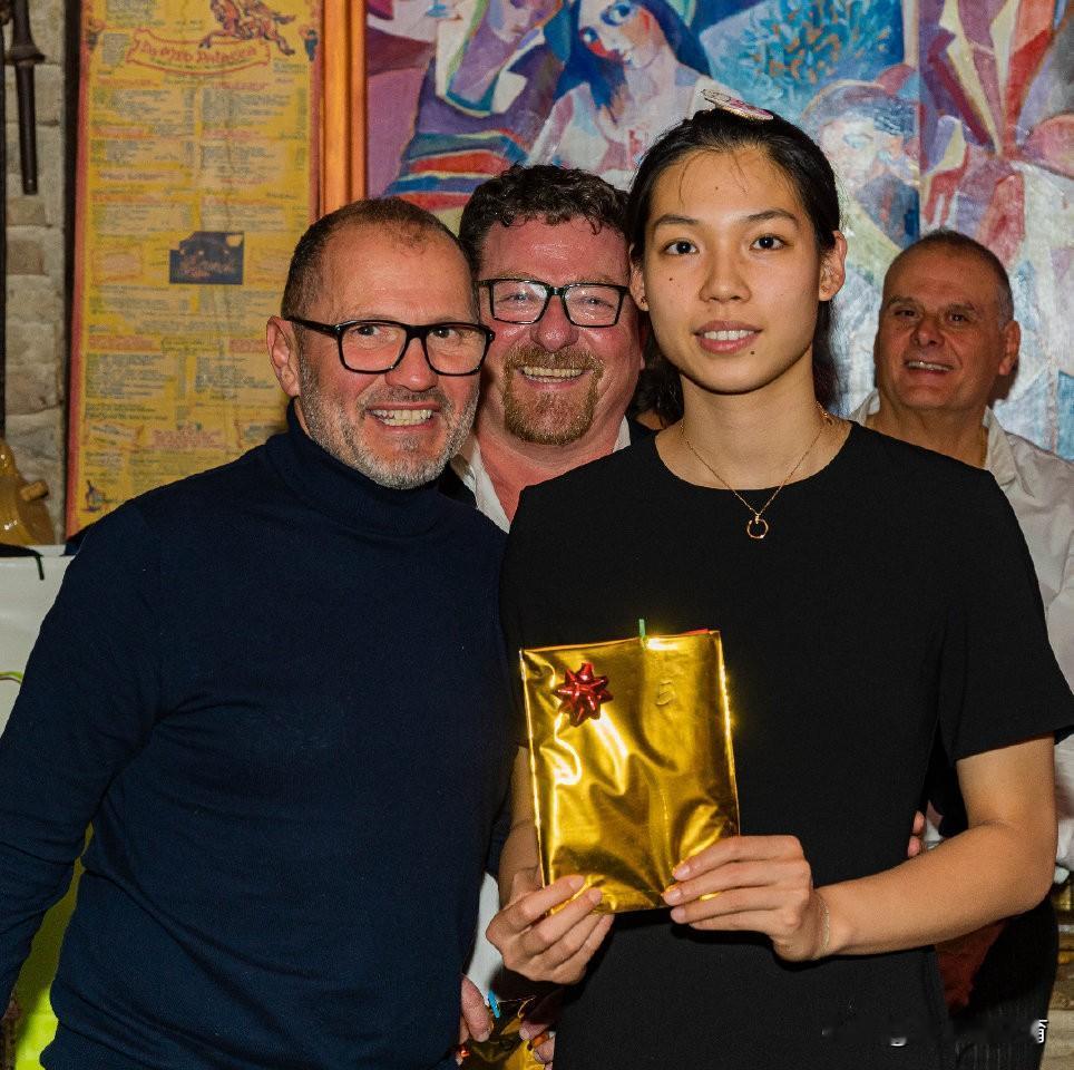 端庄优雅、得体大方的东方美女庄宇珊!原来庄宇珊参加俱乐部的聚餐,不是穿的黑色T恤,是身穿黑色连衣裙,还有红色高跟鞋盛装出席的,但是可爱的发卡一下子暴露了她的年龄,庄宇珊像偷了大人的衣服,来参加大人们的聚餐!可以看出俱乐部的领导,非常重视庄宇珊,给我们阿庄送了礼物,阿庄在国外一个人要好好照顾自己!