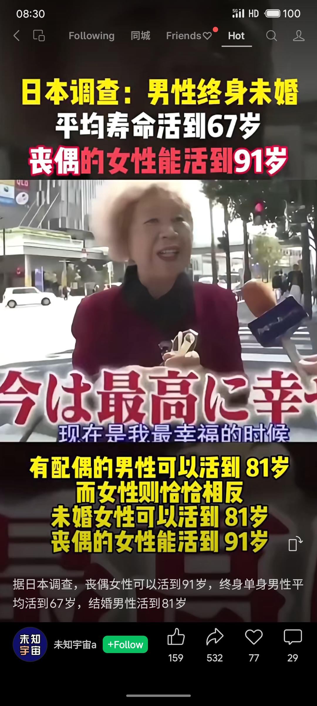 晒图笔记大赛日本调查显示:已婚男性平均寿命81岁,终身未婚男性仅67岁;女性相反,未婚者81岁,丧偶者达91岁。数据揭示婚姻对男女健康影响的显著差异,反映社会角色与压力对寿命的不同作用。
