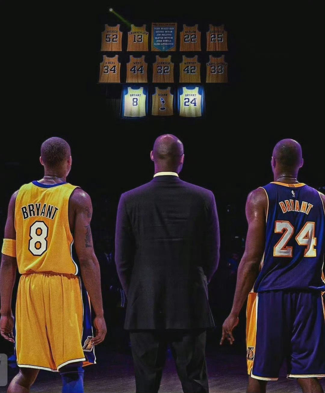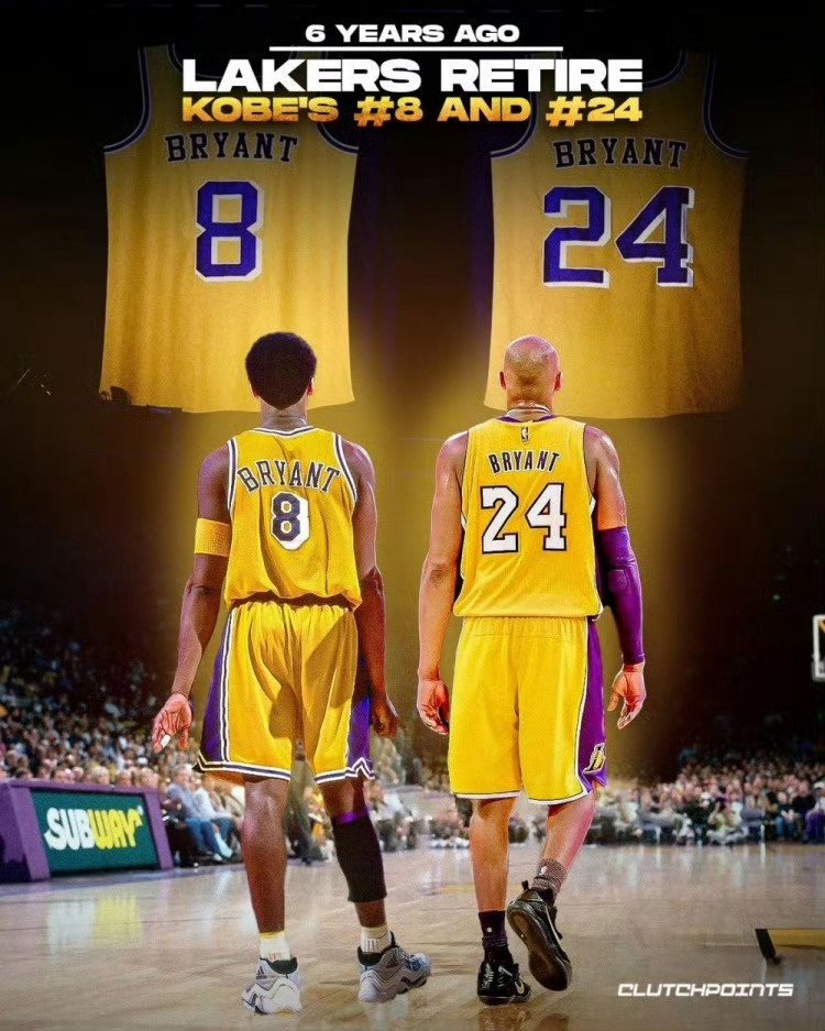 【🏀传奇永存!八年前今日,湖人队隆重告别科比的8号和24号战袍🏆】那是属于湖人队,也属于篮球历史的辉煌一刻。科比·布莱恩特,这位传奇球星,用他的汗水、毅力与荣耀,为湖人和球迷们带来了无尽的回忆与感动。8号球衣,象征着科比的初露锋芒,他是那个在NBA赛场上展翅高飞的年轻飞侠;而24号球衣,则见证了科比的成长与成熟,他是那位引领湖人走向辉煌的王牌杀手。如今,当这两件球衣在斯台普斯中心高高升起,我们不禁感叹时光荏苒,英雄已去。然而,科比的精神将永远留在我们的心中,激励着我们勇往直前,追求梦想。科比KobeBryant科比球衣退役八周年