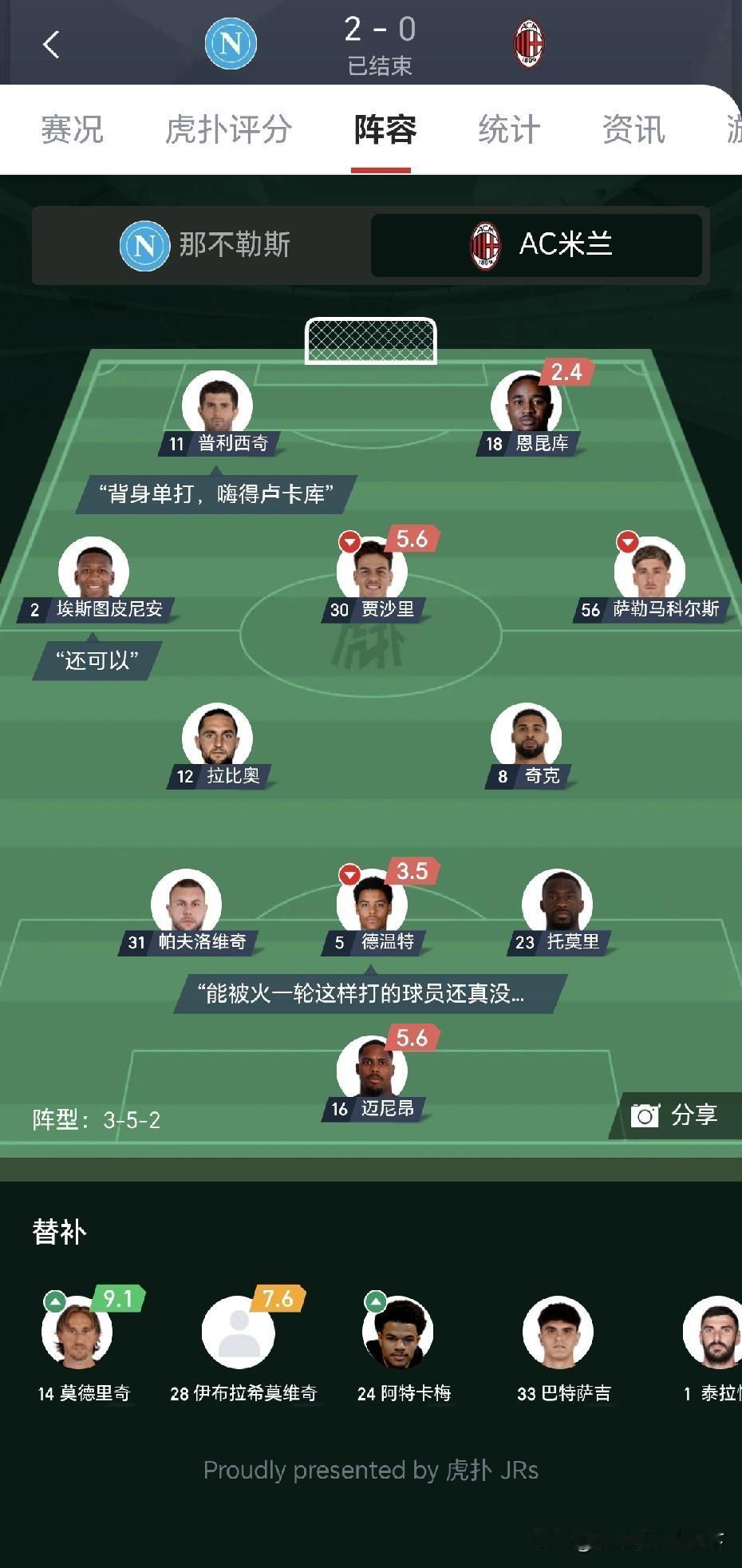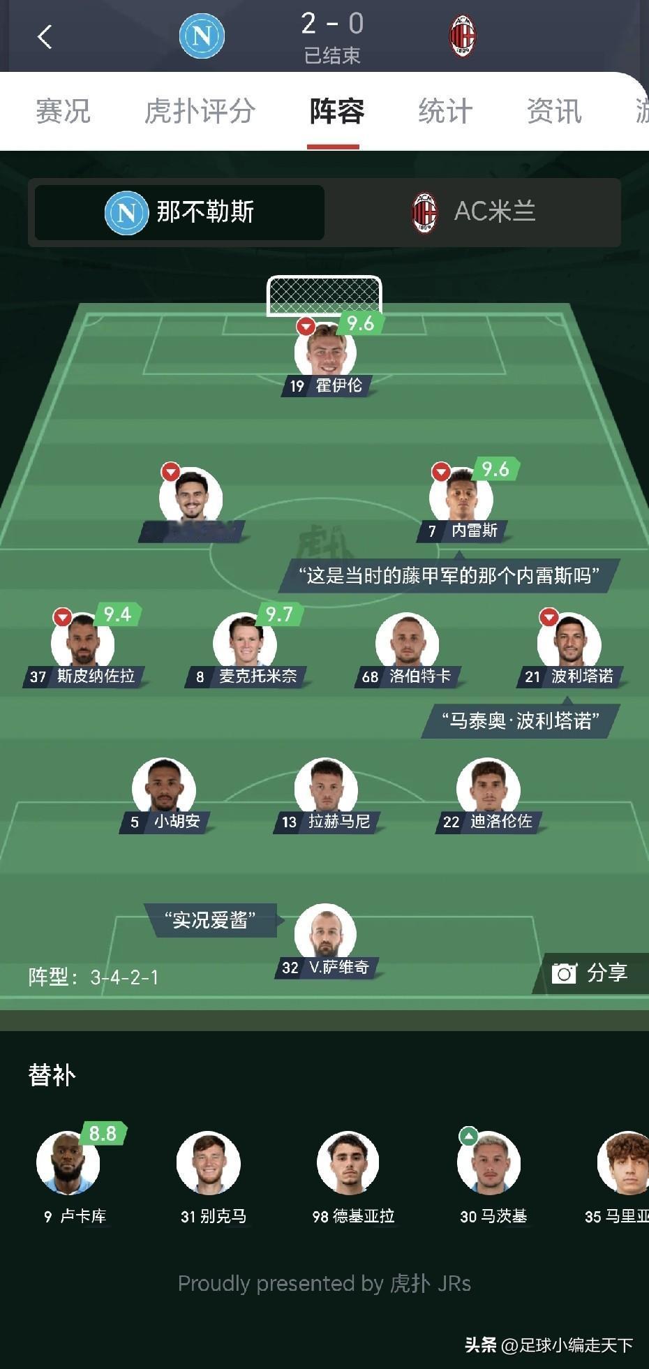 米兰赛季目标明确了,就是华山一条路联赛冠军!别的是多一线都不想参加啊,哪怕这一线就剩一场比赛。 可能有球迷说这是鸡肋比赛,给大家说下本次超级杯的奖金:半决赛输了的球队,比如今晚的AC米兰,将获得240W欧元的奖金,而亚军可以获得600W欧元,冠军球队不单获得950W的奖金,还可以获得150W夏天和沙特超级杯冠军友谊赛的出场费。所以米兰可能是真的踢不过那不勒斯。 以现在米兰这个阵容厚度,不要说意甲冠军了,能保住前四进欧冠都任重道远…… 也从另一个方面说明,米兰夏窗引援确实很糟糕,德温特简直就是个灾难!防守连脚都不伸,恩坤库就是个水货,还有希门尼斯。这哥三个冬窗能卖上价赔点都行赶紧送走!加紧补强!
