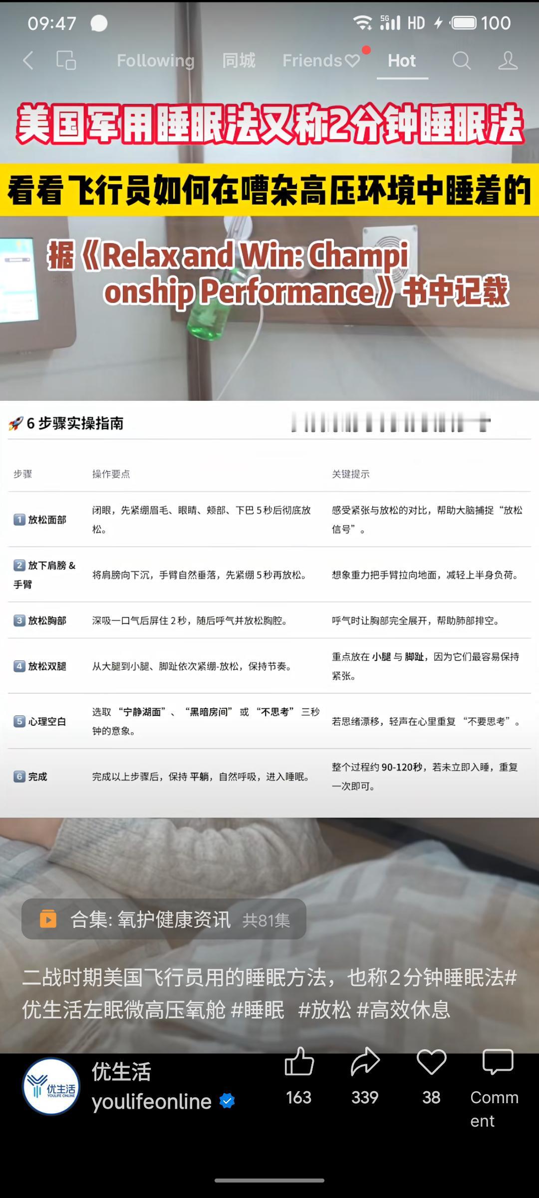 晒图笔记大赛美军二战时的特殊方法通过渐进肌肉放松与心理暗示结合,声称能在高压下快速入睡。其原理符合放松训练逻辑,对缓解紧张、促进入睡或有帮助。但“军用”背景及确切效果缺乏权威验证,实际效果因人而异,不宜视为万能睡眠解决方案。
