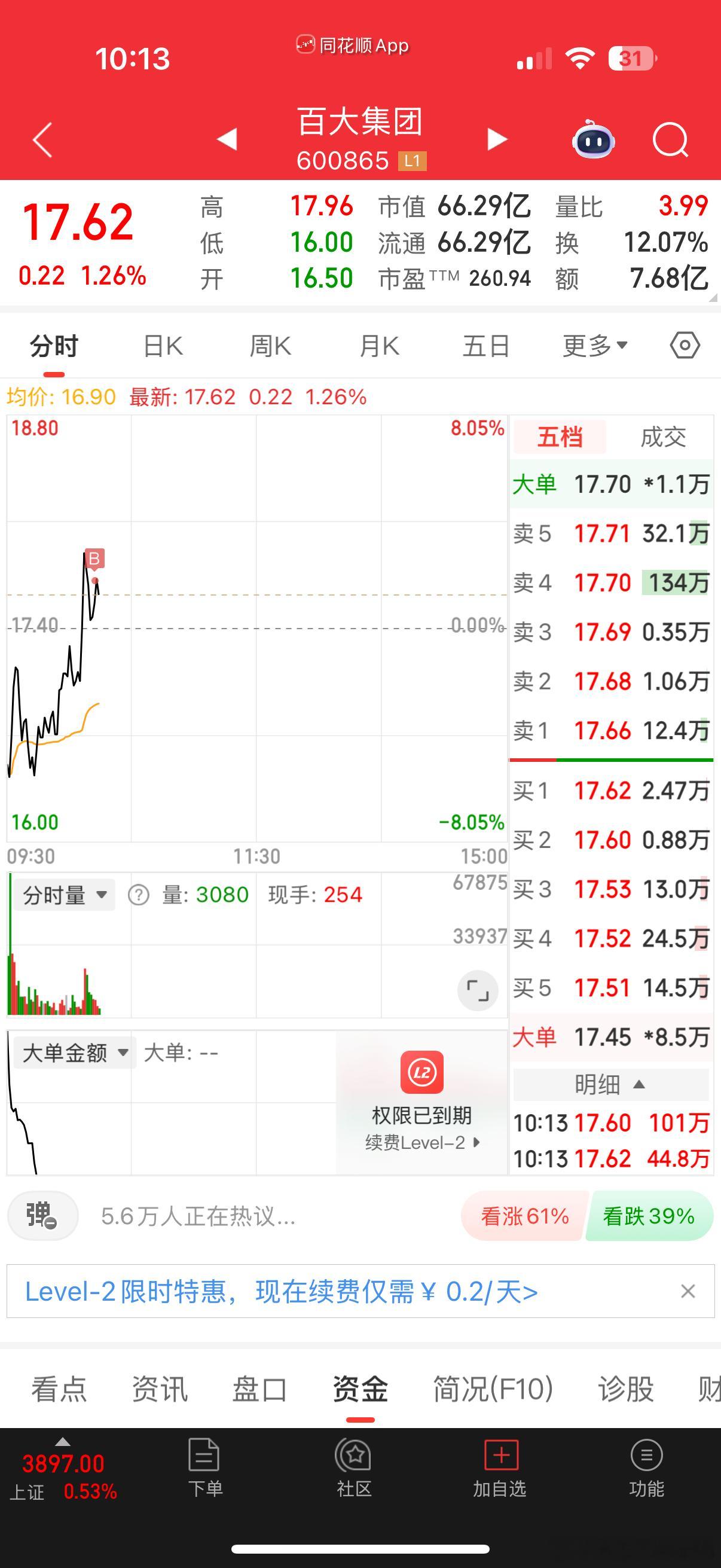 买了一点消费做防守,航天今天略显薄弱,还在走宽度