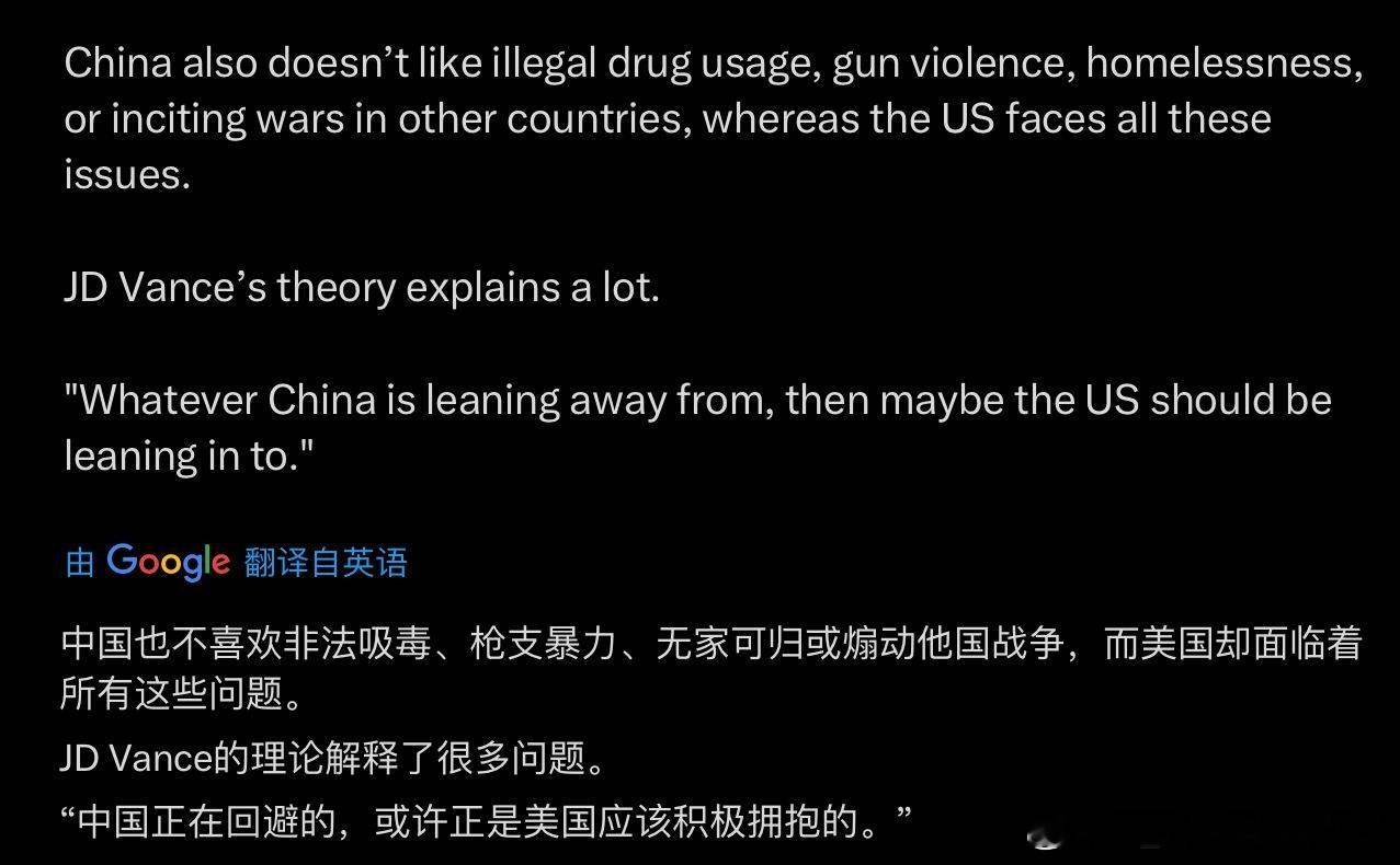 万斯:“中国作为我们最主要的对手不炒比特币,所以我们应该反其道而行之大力炒币!按万斯的逻辑,中国坚决反对的美国就该坚决拥护。我现在明白为什么美国枪支暴力、种族歧视、无家可归、毒品泛滥等问题这么严重了,因为以上社会问题都是中国坚决反对的