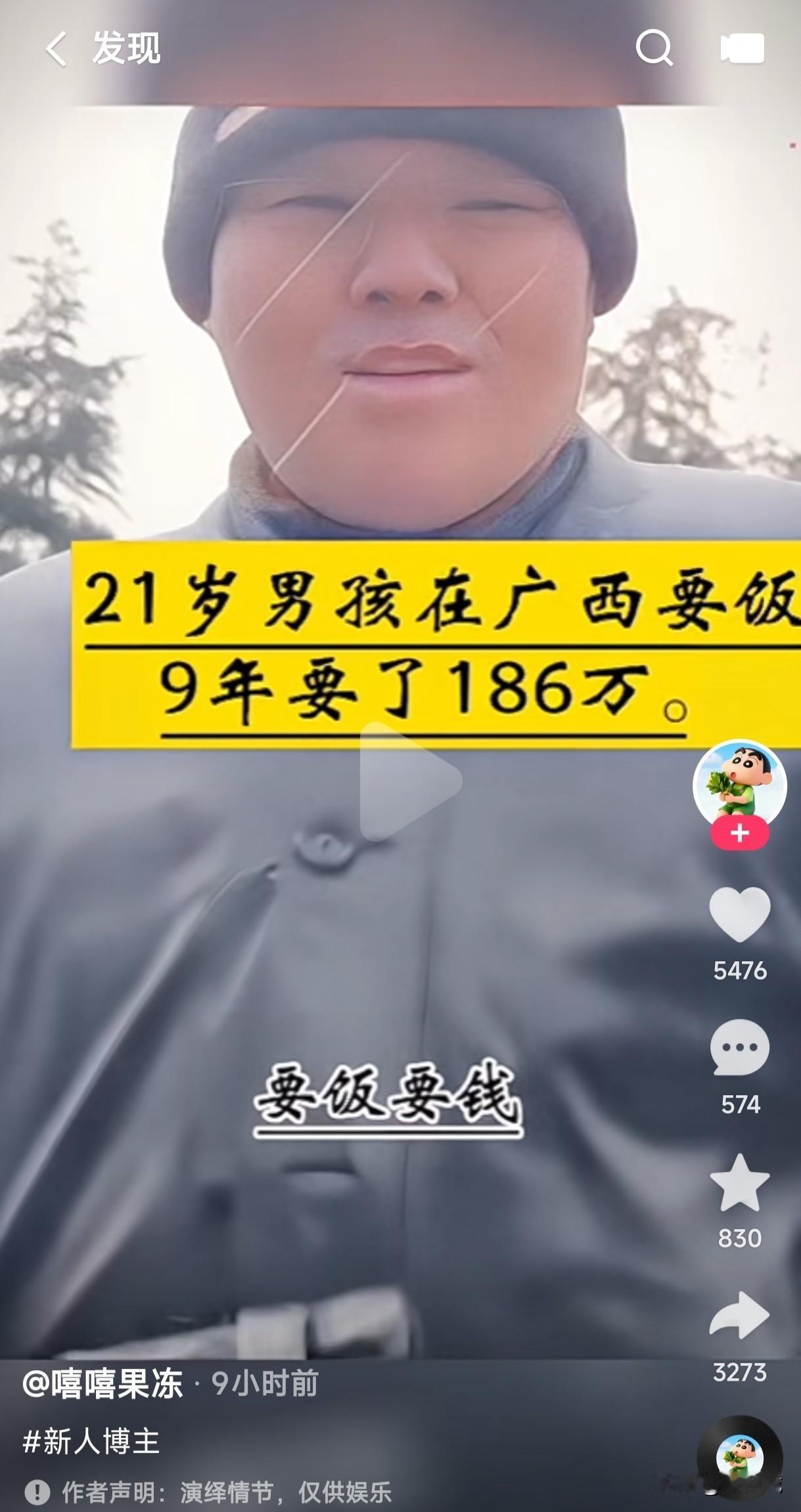 要饭真能发家致富吗? 21岁男子在广西要饭,9年要了186万,这到底是真的还是假的? 当我刷到这个视频的时候我也瞬间是既震惊又羡慕,他四肢健全也不傻不聋的,他是如何想出以要饭的这条路来发家致富的,难不成他要饭的时候又重新装扮一番博得别人的同情和可怜吗? 他说自己只买了一套楼房其它钱都存起来了,也没有买车,如果买车别人看到了会不好,会和他抢饭碗的,他还是要低调一点,评论区的网友也全是疑问?他到底是如何做到,难道仅仅是靠脸皮厚吗?莫非他有令人寻常的本领?