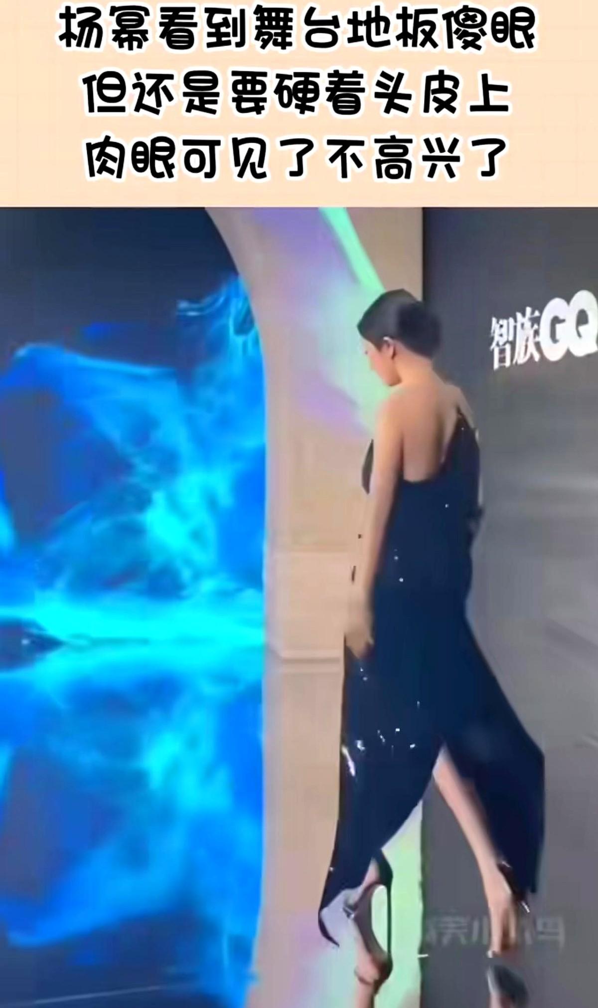 杨幂穿高叉裙遇反光地板超尴尬 那次活动舞台地板反光得像镜子一样一样的,站上去啥都能照得一清二楚。杨幂看到当场傻眼,硬着头皮上去但明显不高兴。穿高叉裙的女生碰到这种地板真的麻烦,容易走光暴露隐私,换谁都高兴不起来,真的是。 看2025年她的几次活动,上海国际传媒港红毯穿蓝色亮片高定裙,爱奇艺尖叫之夜也有裙装造型,都没再提反光地板的事。活动方估计也注意到这类细节了,女明星穿裙装出席,舞台设计得考虑周全些。 这种小细节挺重要的,关系到嘉宾体验和隐私。希望以后活动都能避开这种坑,让大家安心展示造型。