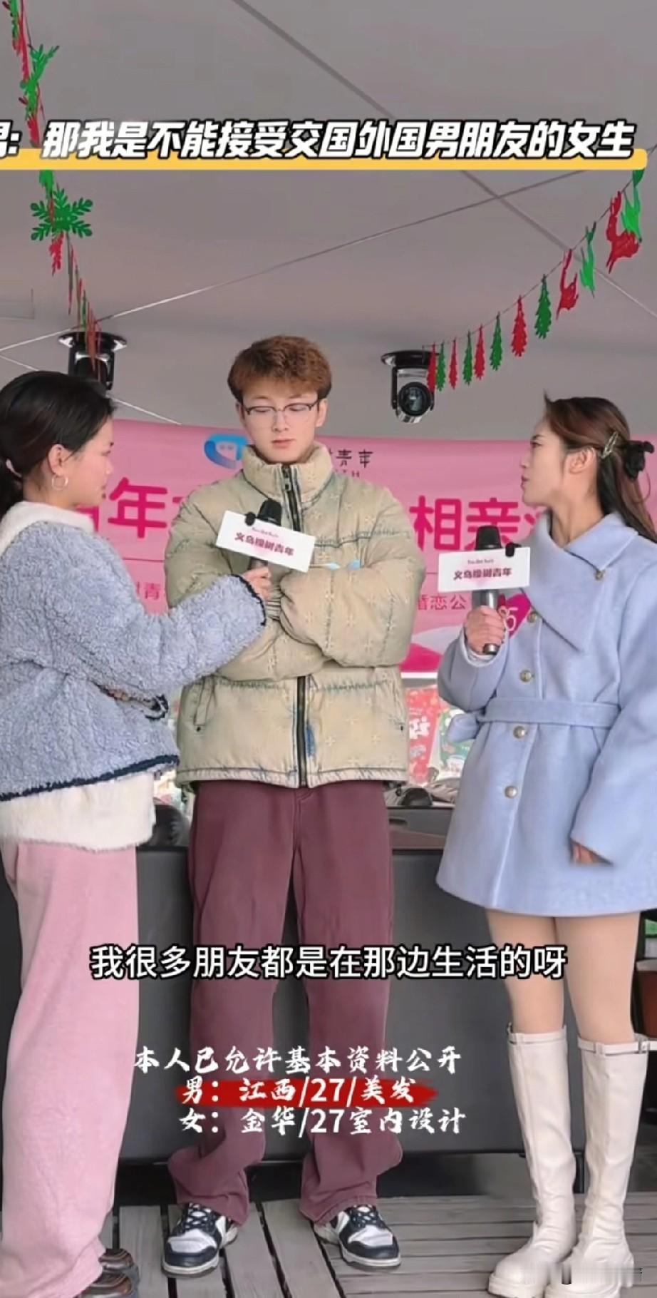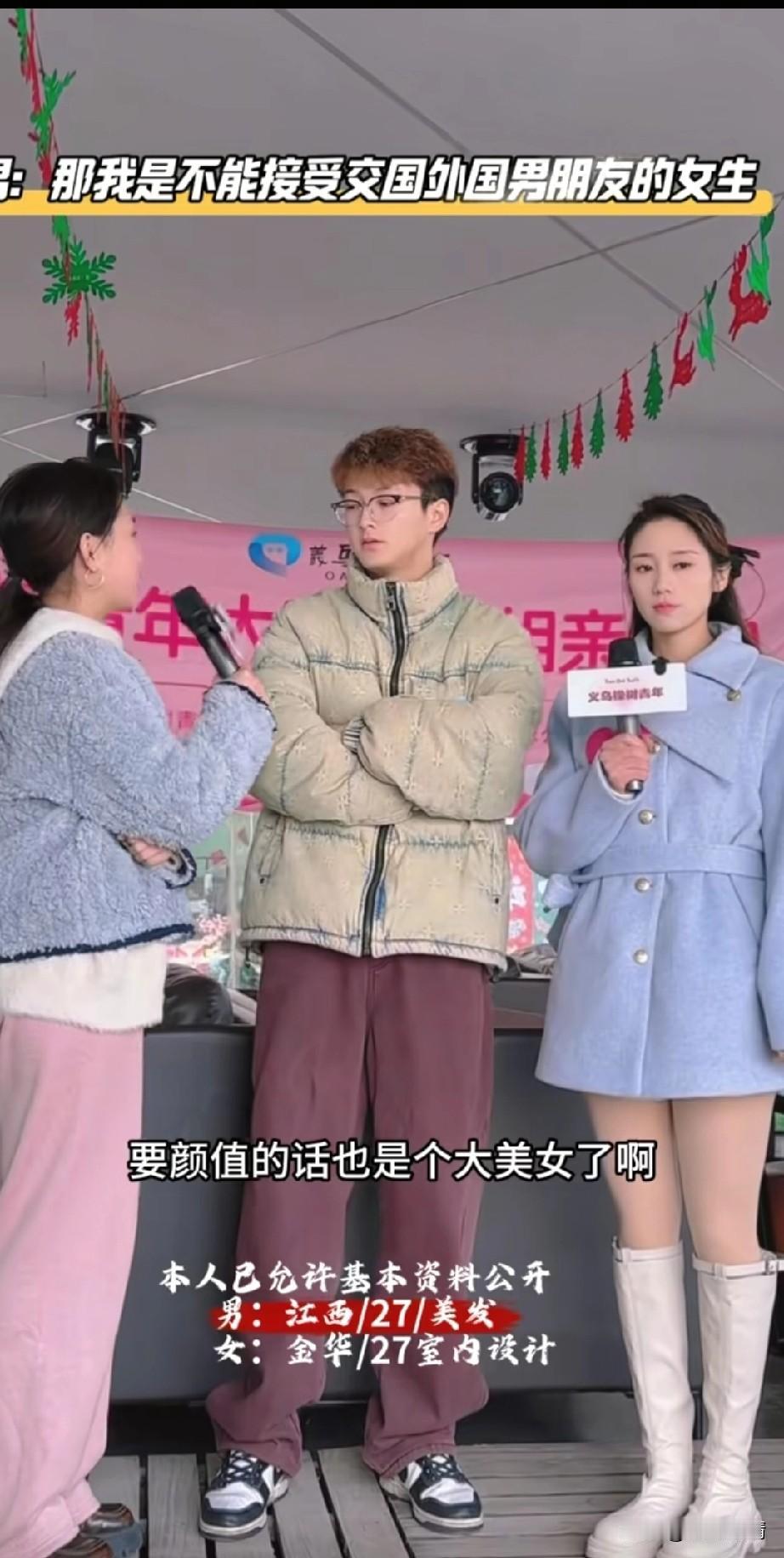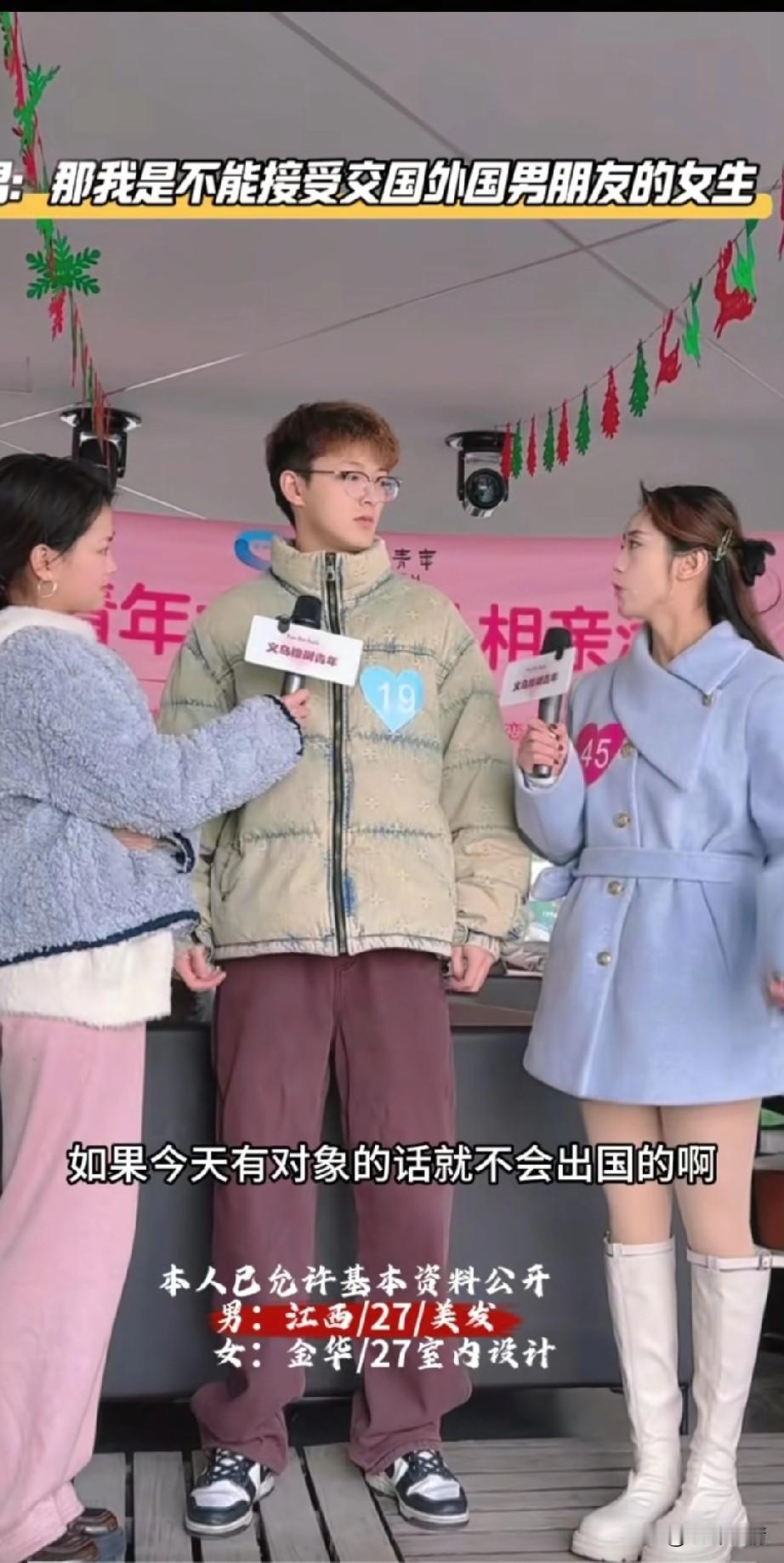 义务相亲名场面来了, 江西男子27岁做美发行业, 你长得帅气,个子也非常高, 金华女也是27岁做室内设计, 穿着也是很时尚, 两个人站在一起看着郎才女貌, 旁边的主持人也觉得两个人能成, 但是男子得知女生有过美国留学经历, 就问女生有没有在那边接触过异性, 害怕女生听不懂又解释了一下, 问她在美国有没有交过外国男朋友? 女生本来有些犹豫, 但是考虑过后又勇敢的说了出来, 她说如果这边有男朋友的话是不会出国,毕竟在美国待了三年了, 男朋友肯定是交过的, 况且她的朋友都是在在那边生活的, 说起来满满的自豪感, 男生表示那很抱歉, 我接受不了有过外国男朋友的女生, 女子仿佛被踩到了尾巴, 突然暴怒起来, 大声对男生吼道那你下去吧! 表情中充满了恶毒的感觉, 可能她觉得被羞辱了, 男生也没有犹豫直接就走了, 女生又瞥了男生一眼, 一句切后头也不回的离开了, 相亲本来就是如此, 双方都有自己的需要, 既然谈不拢那就好聚好散, 何必如此动肝火! 毕竟留法小分队的事情在很多国内男生心中留下了阴影, 按理说女生在美国三年多, 也有了美国的男朋友, 那就应该留在美国好好生活, 回到国内找对象还觉得交过美国男朋友是光荣的事情! 那就别怪找不到男朋友了! 大家对于女生以交过美国男朋友而自豪怎么看? 相亲交友 大龄姑娘相亲 小伙相亲 相亲尴尬一幕 浙江沪相亲 浙江人相亲