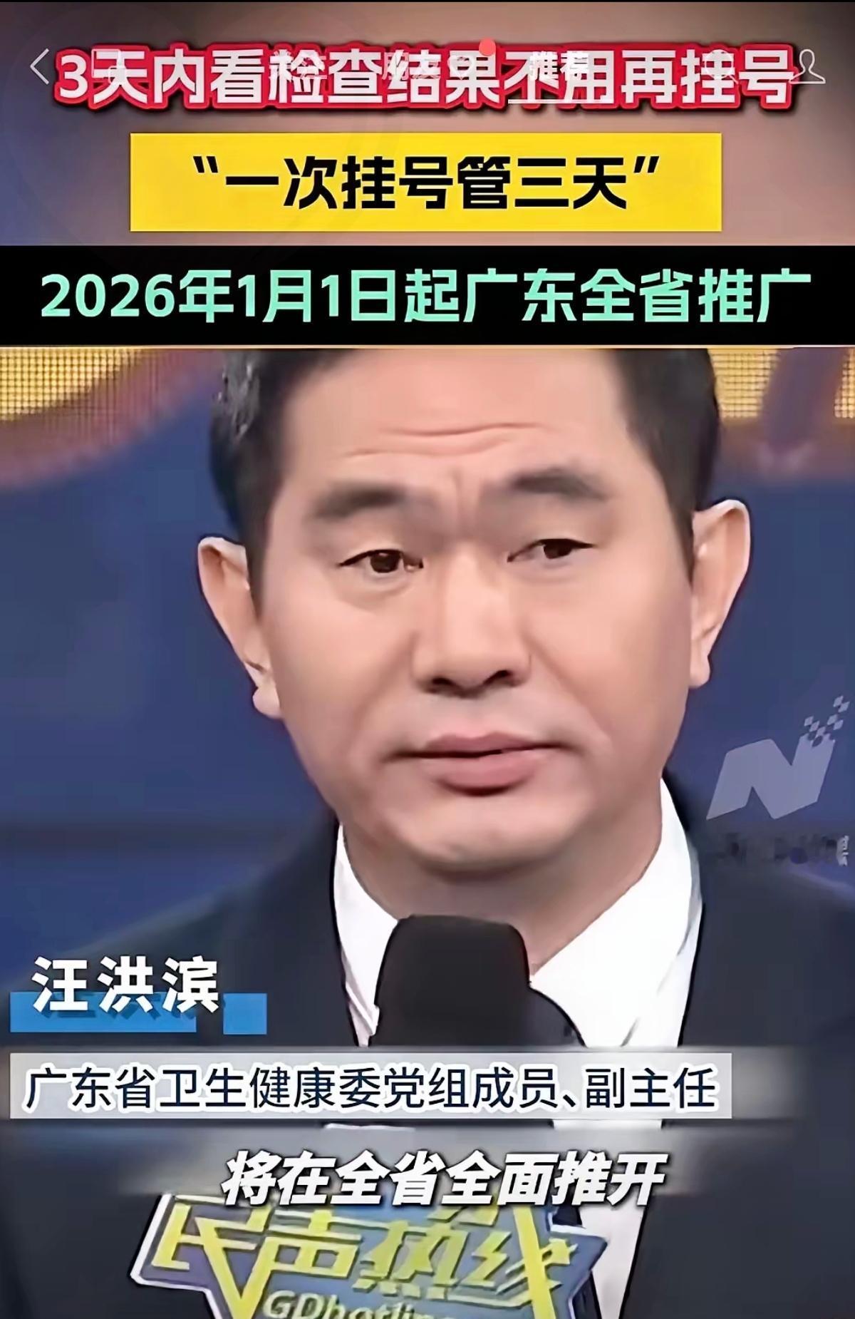 广东人看病福利炸了!2026年1月1日起全省推行“一次挂号管三天”,这波操作真的戳中患者心坎! 谁没被“看报告再挂号”坑过?开了检查等结果,转头想找医生解读,号源早被抢空,白跑一趟还耽误病情。现在新规落地,三天内续诊同一科室直接免挂号,不仅省了钱,还不用跟上千人抢号源,累计都惠及500多万人次了。 但便民不能只做一半,网友的吐槽很实在:3天药吃完没好,第四天照样得重新挂号,还有专家号动辄上百,普通家庭吃不消。其实好政策该有“延展性”,比如按病情灵活调整续诊时长,同时规范挂号费定价让便利不设限。 这波福利确实暖心,但你觉得还能怎么优化?是该延长续诊时间,还是控制挂号费?来评论区聊聊你的想法~广东医院新规 广东就医 广东医保支付