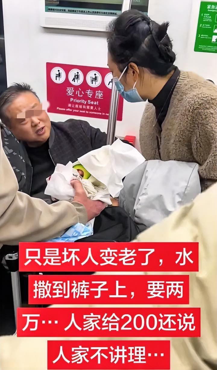 裤子被洒水,张嘴要2万,这老大爷怕不是穷疯了。 近期某趟地铁上,一位乘客不小心把水洒到了一位老大爷身上,把对方裤子弄湿了,于是立马道歉,又拿出纸巾帮忙清理干净。 结果老大爷不肯罢休,张嘴要对方赔偿2万块,不给钱别想走。最后乘客表示可以赔偿200块,但是老大爷不同意,还认为对方不讲理。 要我说赔多少钱都行,前提是让老大爷提供购买裤子的发票,或者提供三方鉴定证明,只要他的裤子价值2万,那赔偿没话说;但是如果只只几百块甚至几十块,那可以告他讹诈。 不过是裤子上洒点水,哪里至于揪着不放,很明显老大爷想借此捞点好处,真是世风日下。