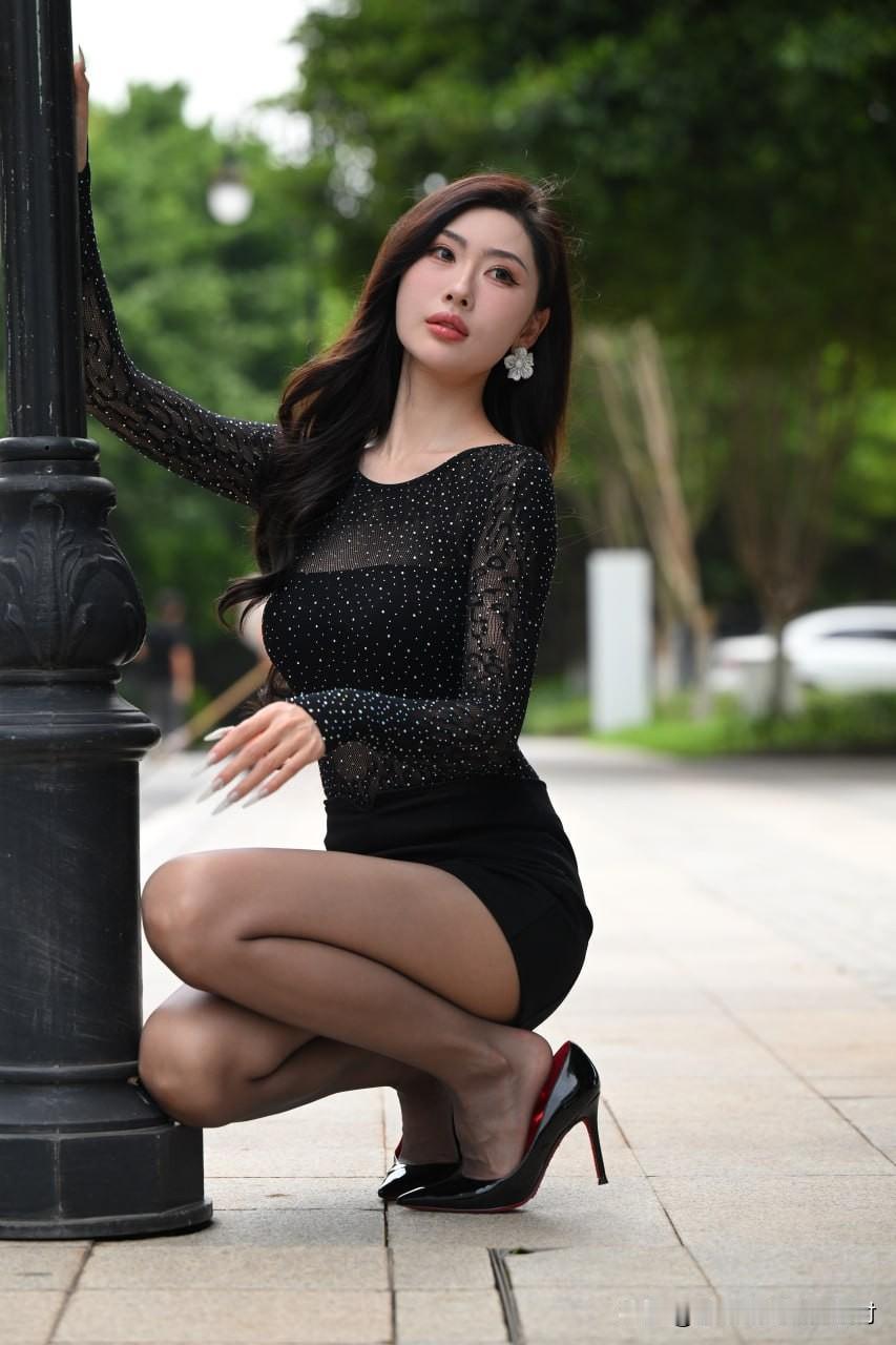 街头穿黑裙闪钻装拍照,被说“太张扬”?审美差异也太离谱了吧 周末在街边拍模特写真,刚按下快门就听到路人嘀咕“穿成这样拍照,未免太张扬了”。我当场就愣了,黑色闪钻蕾丝裙配简约黑丝,明明是把精致揉进日常的穿搭,怎么就成了“张扬”? 模特这身造型其实特别有巧思,黑纱上的碎钻不是浮夸的堆砌,而是细碎的光点,在自然光下低调又有质感;修身的剪裁也不是刻意紧绷,而是刚好勾勒出身体的流畅线条,搭配红底高跟鞋,把都市女性的优雅和利落拿捏得死死的。 更别说在绿植环绕的街头拍,黑色裙装和自然背景形成反差,路灯作为道具还添了几分都市氛围感,每一张照片里的情绪,都是独立女性的自信与从容。 作为摄影师我真的想说,穿搭从来不是为了迎合谁的眼光,而是自我表达的方式。这位模特用一身黑裙诠释的美,是大胆展现自我的勇气,也是对精致生活的追求。审美本就没有标准答案,有人喜欢简约素雅,有人偏爱亮眼精致,互相尊重才是最重要的。 你们觉得这种穿搭算“张扬”吗?欢迎在评论区聊聊你的看法,觉得我说得有道理的话,别忘了点赞转发,关注我看更多不一样的穿搭写真~ 黑裙氛围感写真 黑色系穿搭写真 碎钻写真 闪钻写真 黑闪动感写真 亮钻衬衣写真 闪钻人像 亮钻写真动拍 抹胸黑裙照 黑裙拍照姿势 黑裙拍照 黑裙室内照 细闪黑裙 黑裙楼梯照 黑裙金饰照 黑裙照 来分享下你眼中的倾城美人吧! 你心中的美女啥模样 精品街拍图片分享