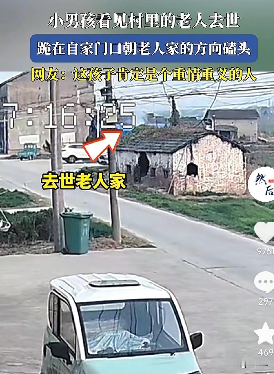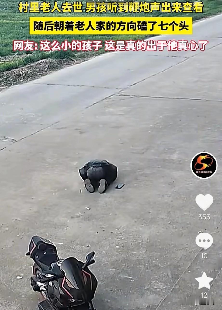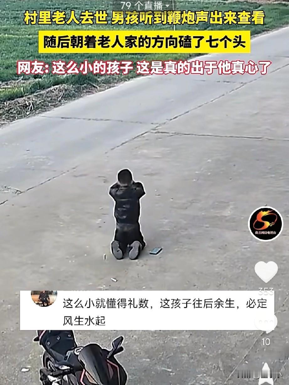 什么是传承? 这才是上下五千年的传承…… 村里有老人去世了走了,男孩听到鞭炮声音出来,向远处很有礼貌的磕了几个头。 这个孩子的做法简直让人不可思议。 这么小的孩子既然还能懂得这样的传承,说明人品,家教这一块,还是值得肯定的。 尤其,他能跪下来拜一拜,说明他的家风真好,跪下时还能把手机放地上,说明他人品也是杠杠的。 传承千年不断的文明。 孩子的举动,也让我们知道了,传统文化从未丢失,并且也在新一代中继续传承!