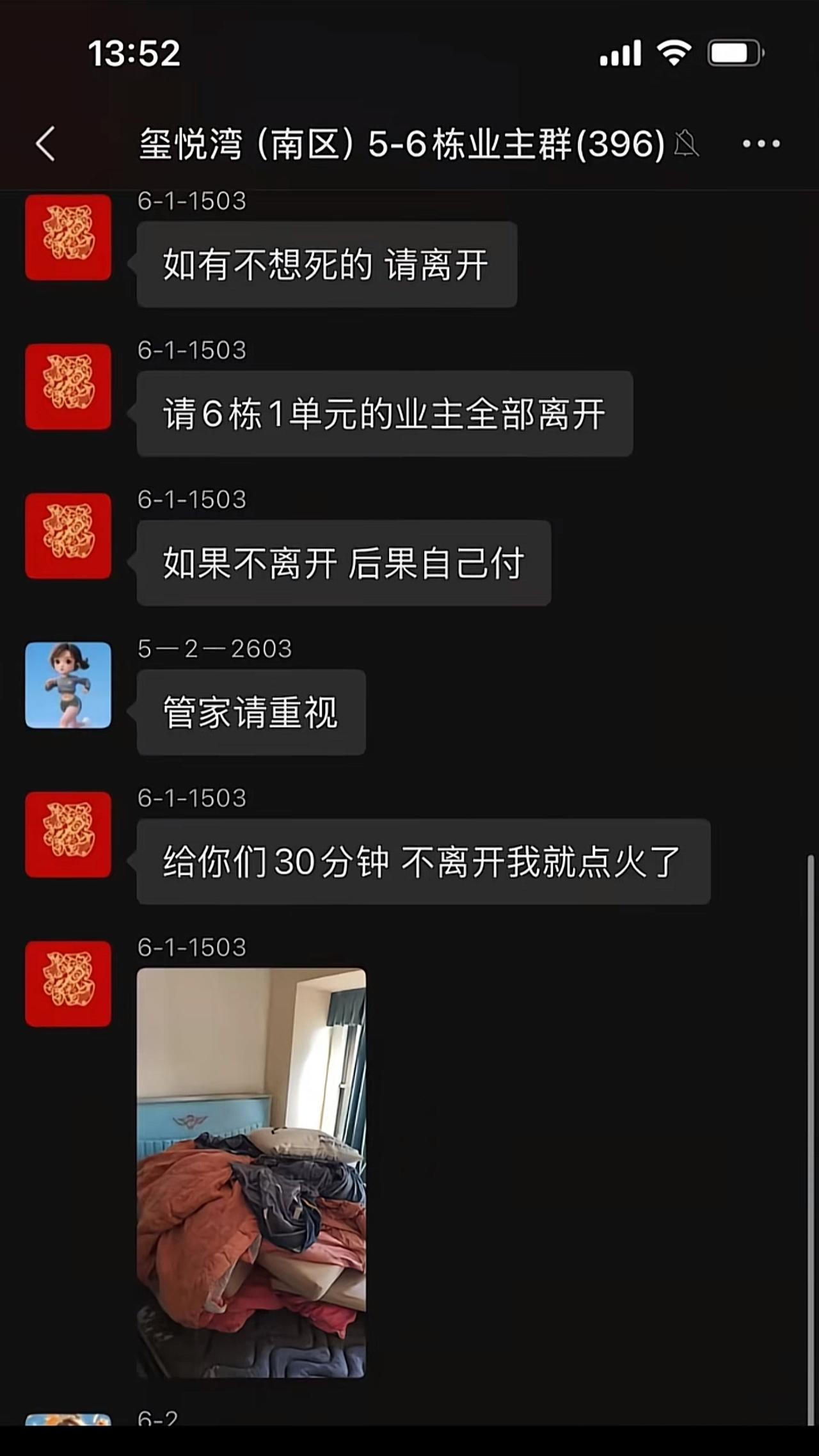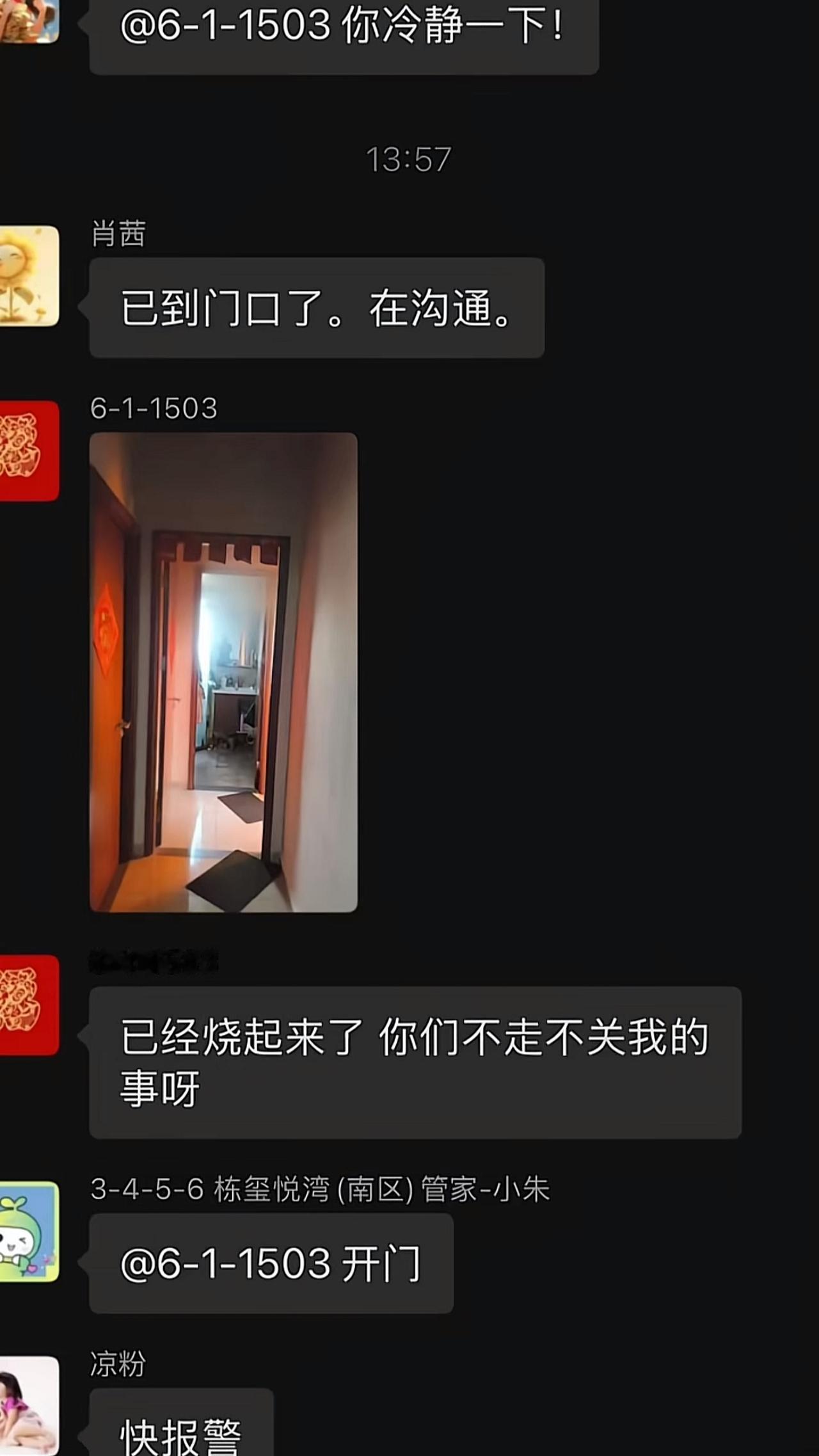 在业主群内通知自己要烧房子,让邻居们及时撤退,大哥真是“人狠话不多”。 珠海一小区群内,一名住户在群内发布通知,让同单元住户三十分钟内离开,他要开始点火烧房子了,如果不离开,后果自负。 瞧瞧这嚣张的口气,不知道的都以为这人喝多了开玩笑的,谁知这人确实喝酒了,也真敢烧,得亏他在群里“通知”了大家,才叫业主跟物业能及时反应,报警并及时扑灭了火灾,才没酿成大错。 现在的人也太可怕了,啥事都能干得出来,看来小区群还是不能屏蔽,有些“大事”咱得提前知道啊。