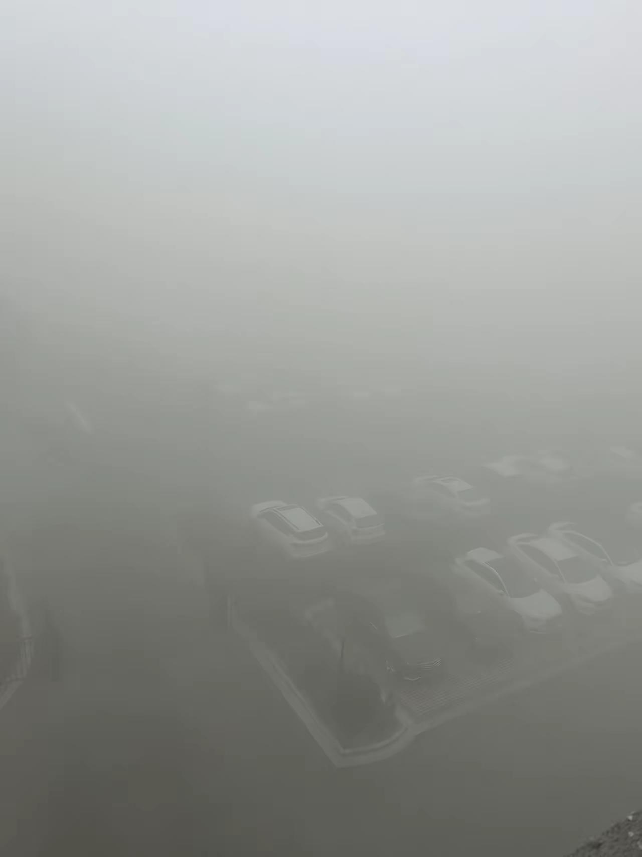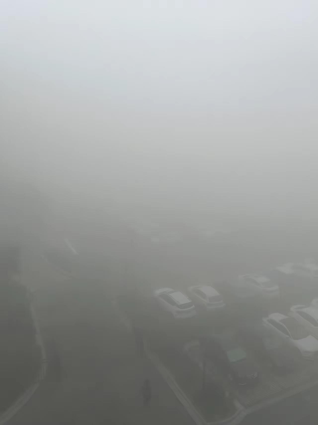 今天早起就是雾气腾腾,中午的雾稍微消散,可能是温差太大了吧。