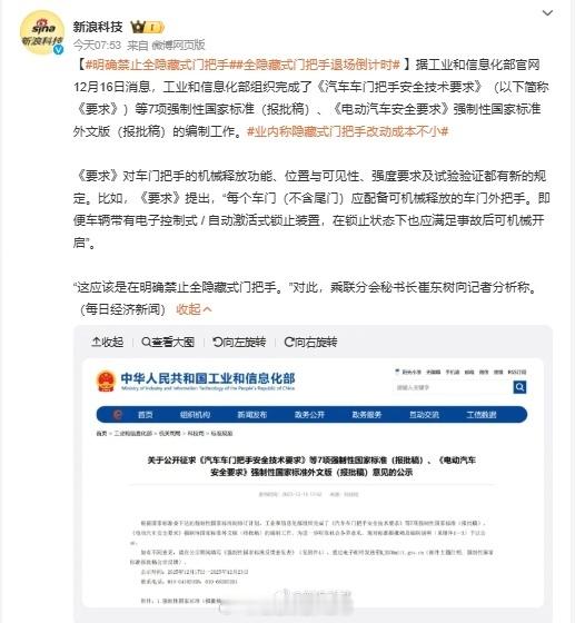 明确禁止全隐藏式门把手 是时候让有的东西退出历史舞台了,相对于那一点风阻还有续航,安全和生命更重要,支持。