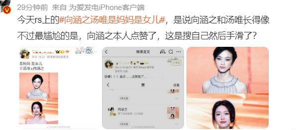 大生意人这两位小花还真是“有缘”! 一个长得像全智贤,一个气质像汤唯,都是韩国人气地位很高的女明星。 娱乐圈有很多女明星,虽然没有血缘关系,但确实长得很像。 比如刘诗诗和刘亦菲,杨幂和赵丽颖,年轻时都有被粉丝认错过的经历。 还有李沁和孙怡,李一桐和白鹿,章子怡和童谣等,都有过类似的营销。 向涵之无论长相还是声线,确实和汤唯有几分神似。 而且向涵之作为后辈,能跟汤唯这样一个女神级的大花长得几分相像,肯定觉得荣幸之至啊! 所以她点赞这个行为,我觉得没什么好群嘲的。