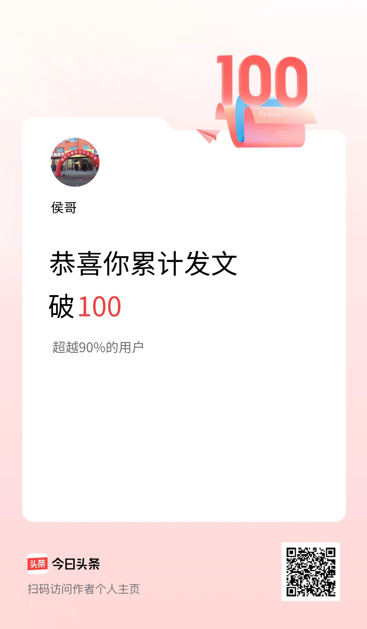 我在头条累计发布内容破100啦!