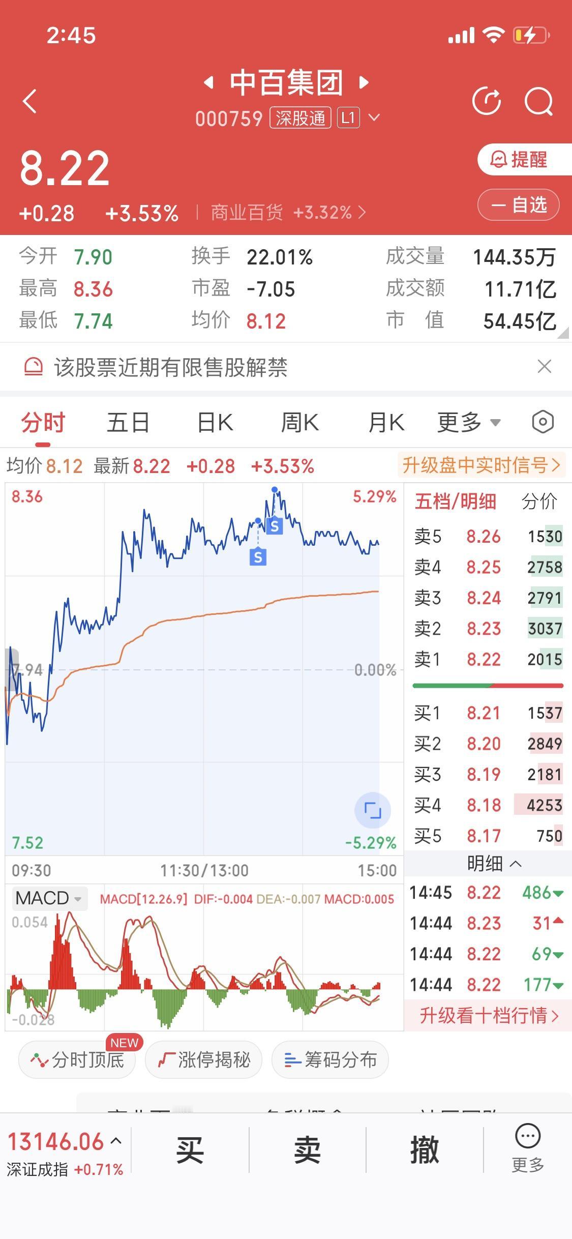 12月19日清仓中百集团,我这操作还挺及时。商业百货板块虽强,但回调是迟早的事,我打算下周回调再进。就看中百集团,12月以来股价疯涨,之前它在大消费、胖东来概念刺激下异动涨停,还出现极端走势,高位巨量换手后就崩了,这妖股坠落,没及时跑的资金全被套牢,我这提前跑出来,等回调再进,说不定能捡个便宜。12月确实是消费旺季,我最后悔的是卖飞了东百,不然能吃几个板,唉