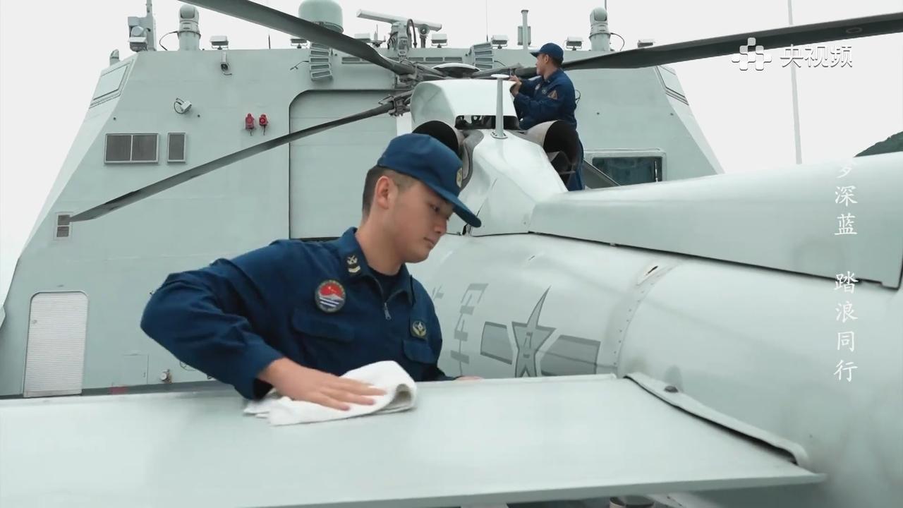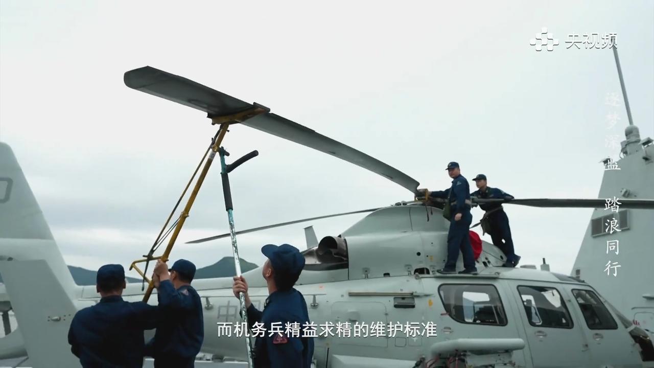 “海峡尖刀”054A改淮北舰(516)好图 机务人员保养直-9 逐梦深蓝,踏浪前行