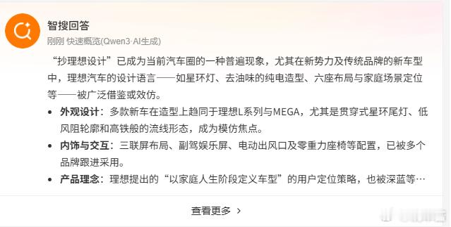 讲真,新势力里大家都说蔚来车子设计好,但理想的设计也是不容忽视的不说别的,多少车企的新车有着理想的影子?要真是拉,其他车企为什么要抄呢?