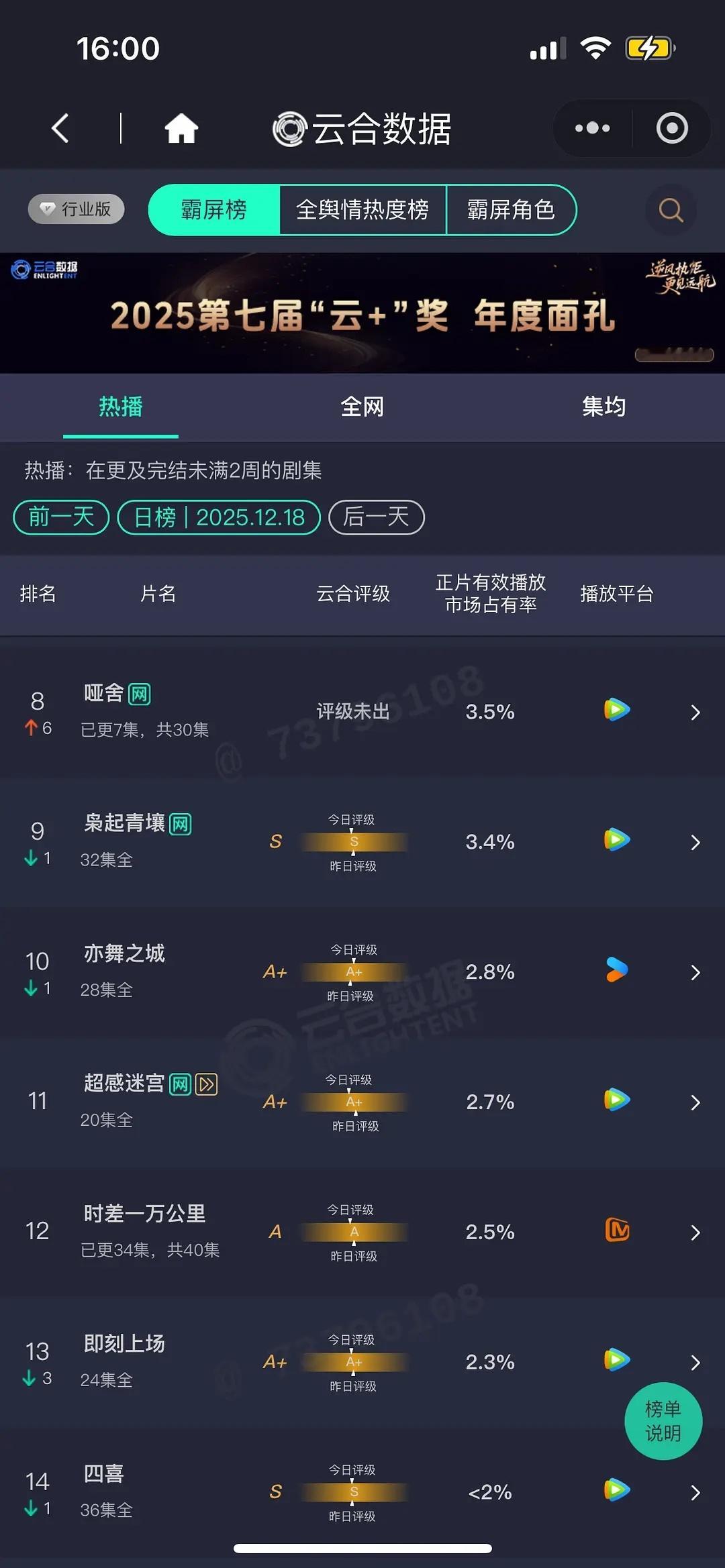 老舅 3100+ 没横盘继续涨,有希望集均2500+长安二十四计 2100+ 横狙击蝴蝶 1900 掉的不快 集均1500+双轨 1500 完全起不来哑舍次日 550+ 扑得惨烈