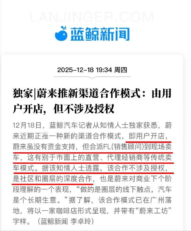 蔚来汽车 卖车新操作。 用户开店卖车,蔚来提供销量。