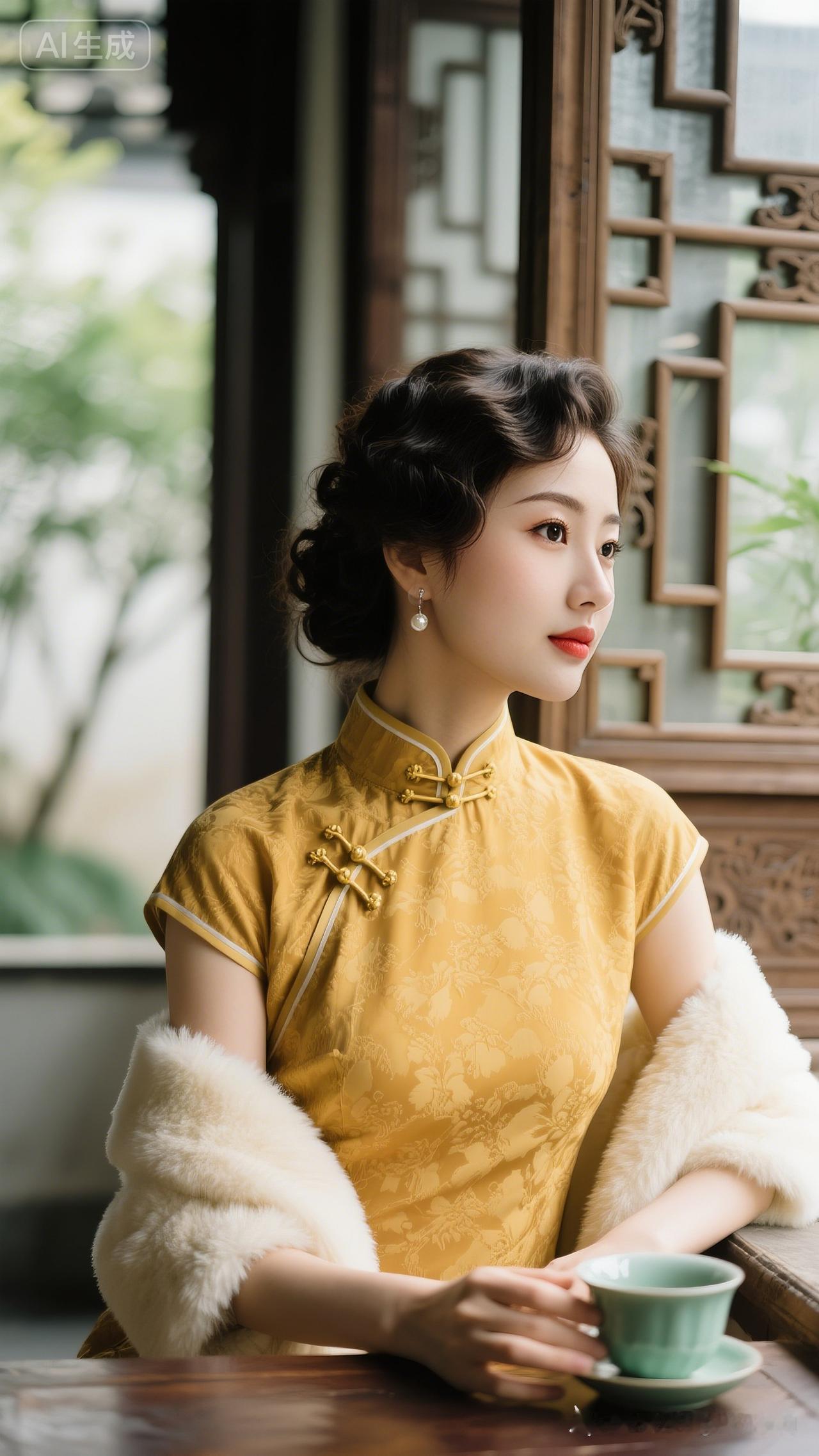 这位小姐姐穿着红色的旗袍,看起来好漂亮!