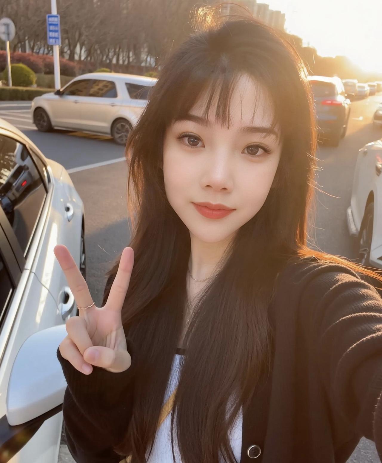 温柔甜美的车内自拍,冬日暖阳下的迷人微笑😊